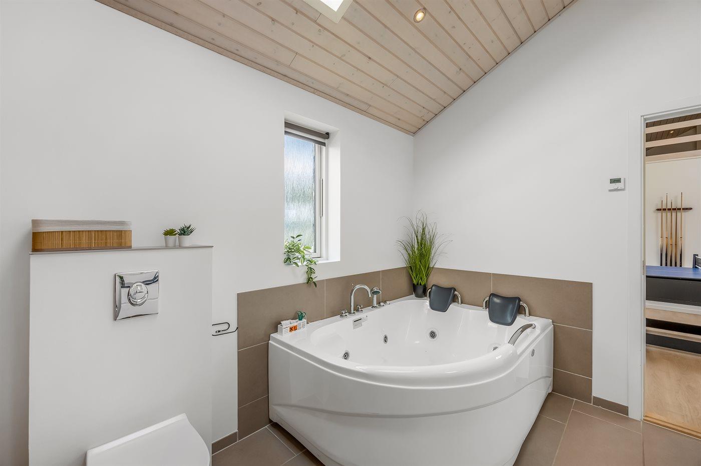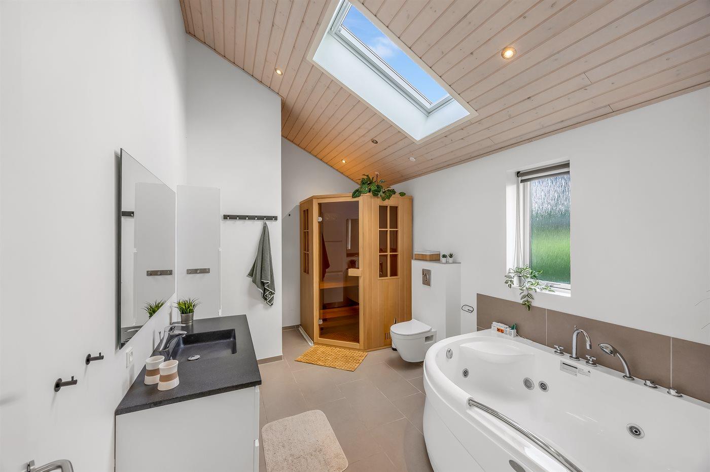 Der er 2 badeværelser med bruseniche og 2 toiletter. Der er gulvvarme på 2 badeværelser. I saunaen er der mulighed for afslapning.