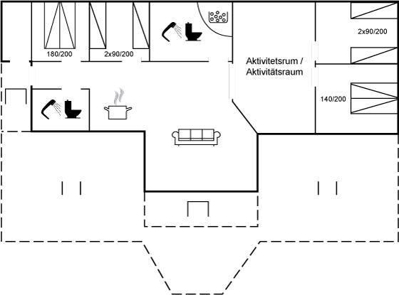 Der er i alt 4 soveværelser. Sovepladserne fordeler sig på: 4 sovepladser i dobbeltsenge. 4 sovepladser i enkeltsenge. Derudover er der 1 stk. barneseng.