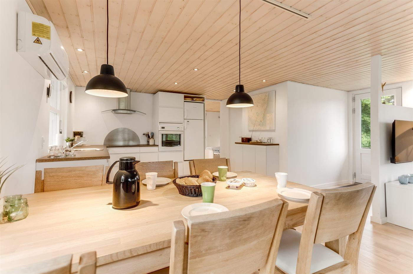 Køkkenet er udstyret med 1 køleskab. Der er 4 keramiske kogeplader, varmluftovn, mikrobølgeovn samt opvaskemaskine.
