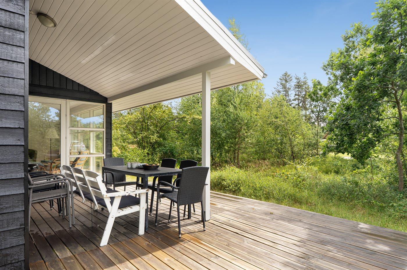 Ferieboligen er beliggende på en 1075 m² stor naturgrund. Der er 400 m til havet. Der er 6000 m til fjorden. Nærmeste forretning er beliggende i en afstand af 1500 m. Der er en golfbane i en afstand af 4500 m. Til ferieboligen hører åbent terrasseareal. Desuden er der overdækket terrasse. Trampolin. Grill til rådighed. Parkering ved ferieboligen.