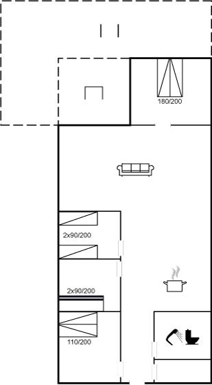 Der er i alt 4 soveværelser. Sovepladserne fordeler sig på: 4 sovepladser i dobbeltsenge. 2 sovepladser i enkeltsenge. 2 sovepladser i køjeseng.