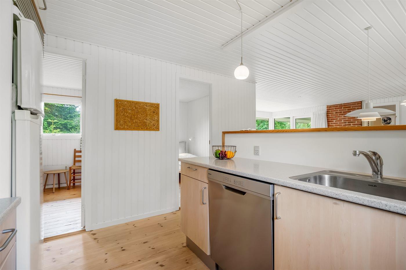 Køkkenet er udstyret med 1 køleskab. Der er 4 keramiske kogeplader, varmluftovn samt opvaskemaskine.