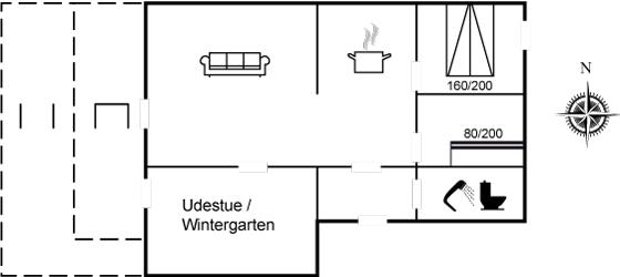 Der er i alt 2 soveværelser. Sovepladserne fordeler sig på: 2 sovepladser i dobbeltseng. 2 sovepladser i køjeseng.