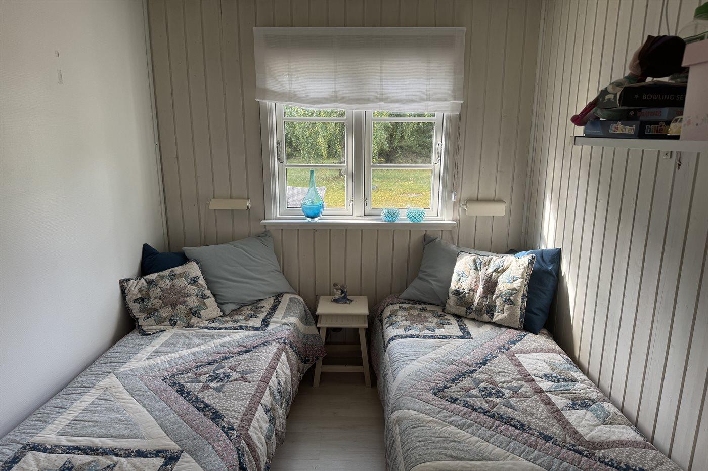 Der er i alt 3 soveværelser. Sovepladserne fordeler sig på: 4 sovepladser i dobbeltsenge. 2 sovepladser i enkeltsenge. 2 af disse sovepladser befinder sig i et anneks. Derudover er der 1 stk. barneseng.
