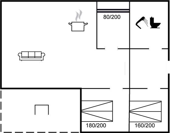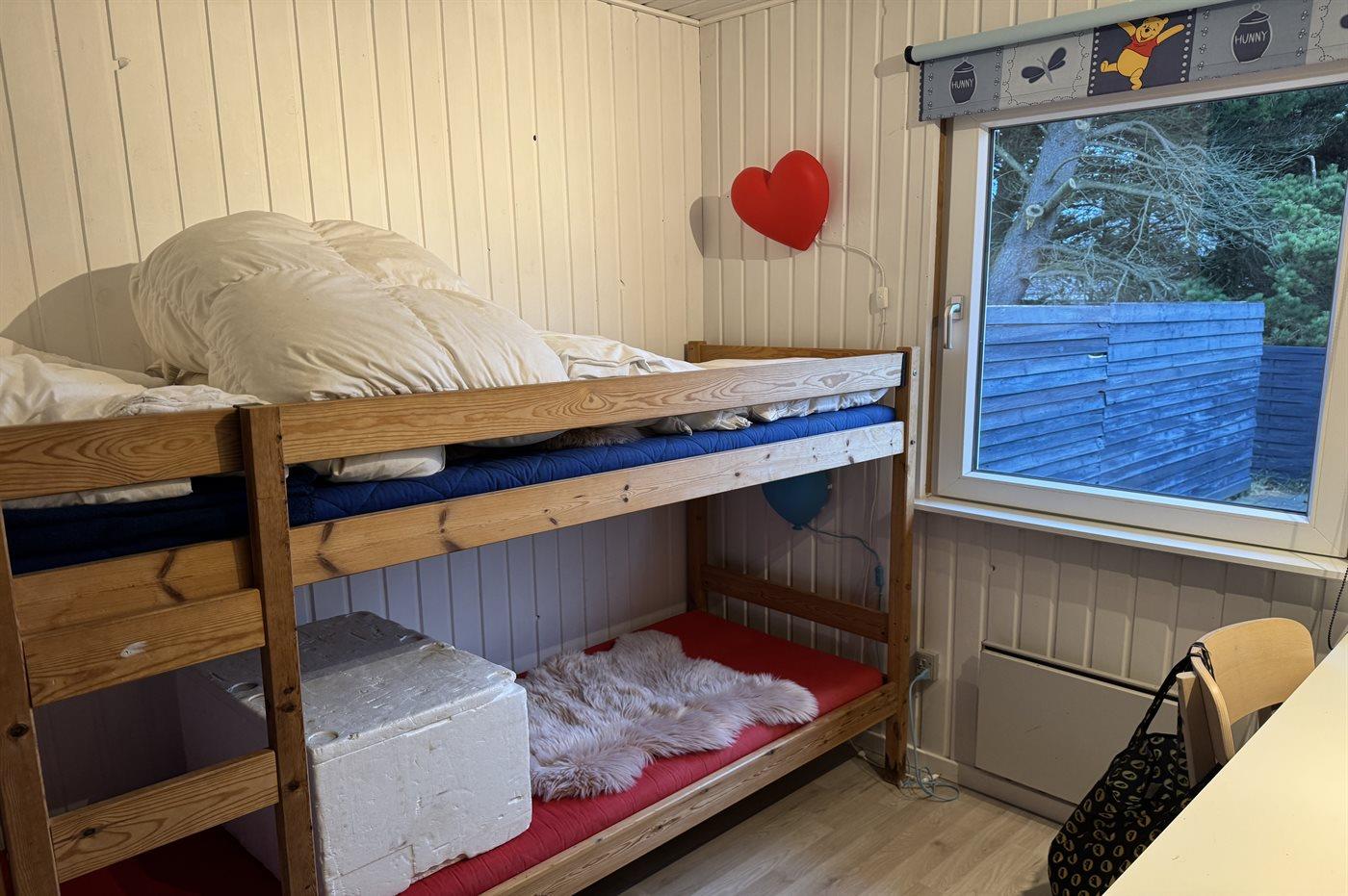 Der er i alt 3 soveværelser. Sovepladserne fordeler sig på: 4 sovepladser i dobbeltsenge. 2 sovepladser i køjeseng.