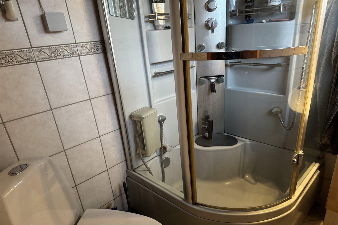 Der er 1 badeværelse med bruseniche og 1 toilet.. Der er gulvvarme på 1 badeværelse.