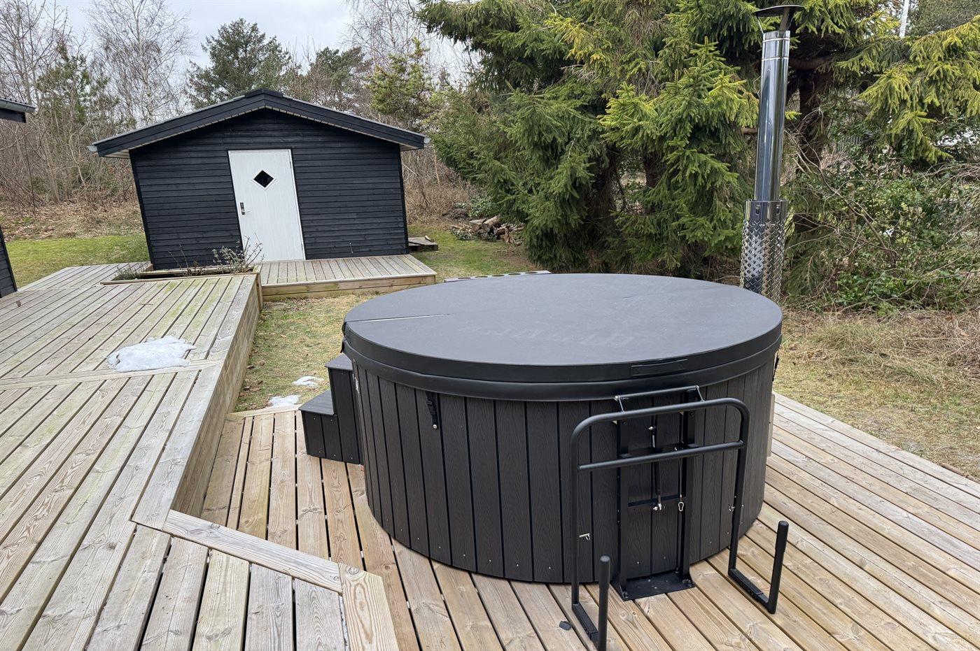 Der er mulighed for afslapning i det udendørs vildmarkskar til 5 personer.