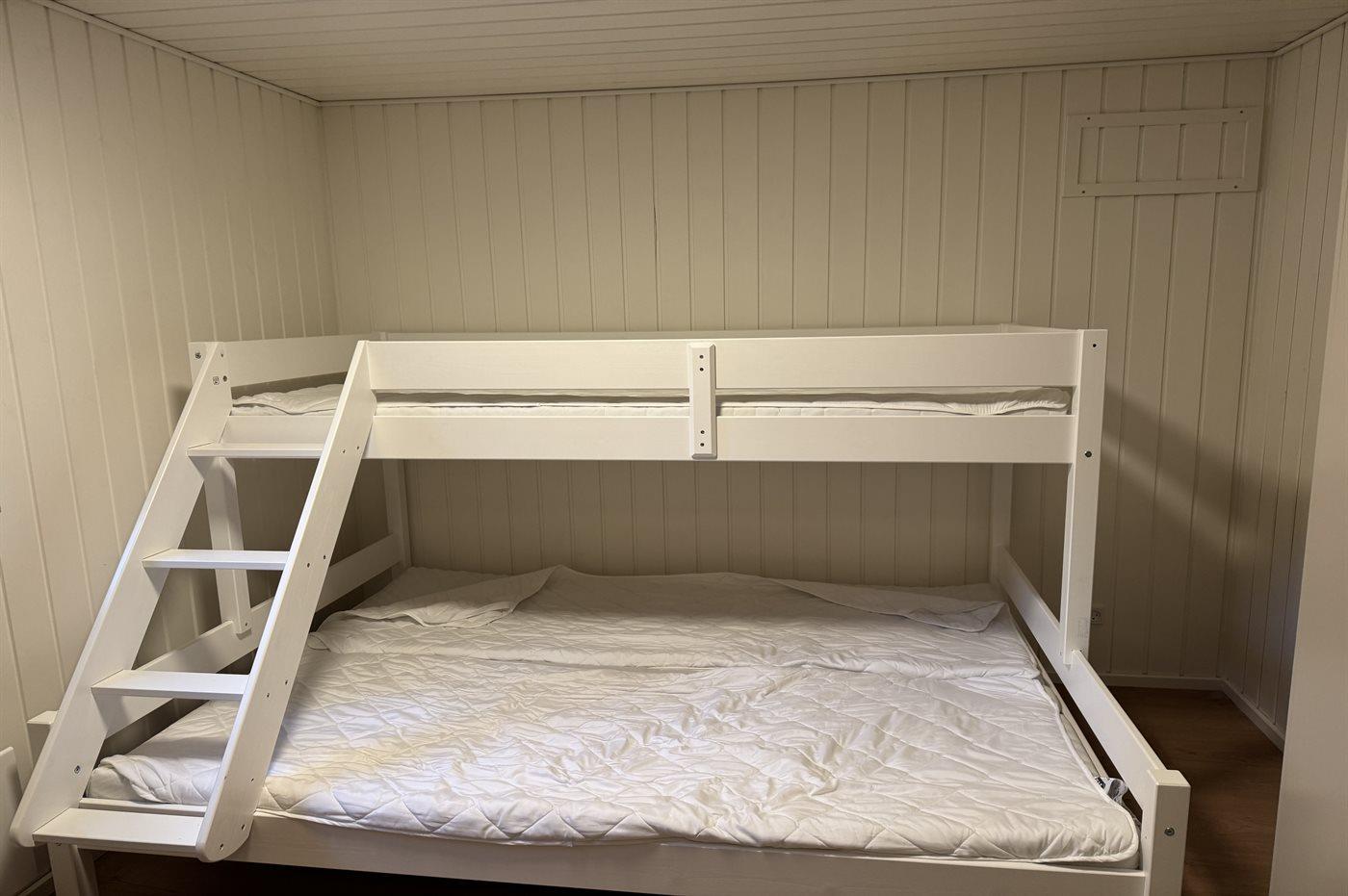 Der er i alt 2 soveværelser. Sovepladserne fordeler sig på: 2 sovepladser i dobbeltseng. 3 sovepladser i køjesenge. 2 sovepladser i sovesofa (dobbelt). 2 af disse sovepladser befinder sig i stuen. Derudover er der 1 stk. barneseng.