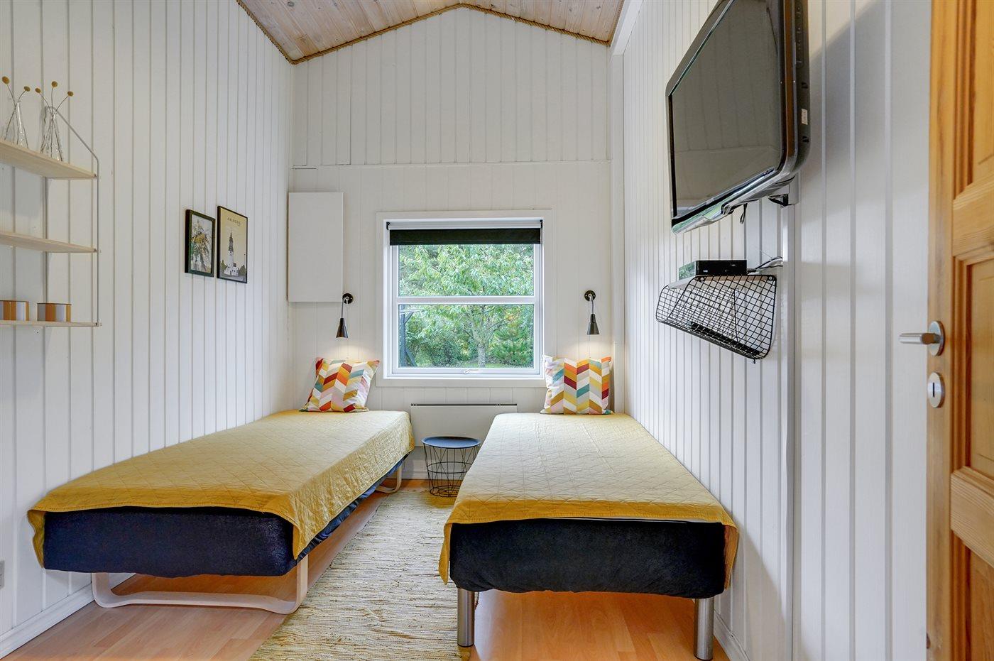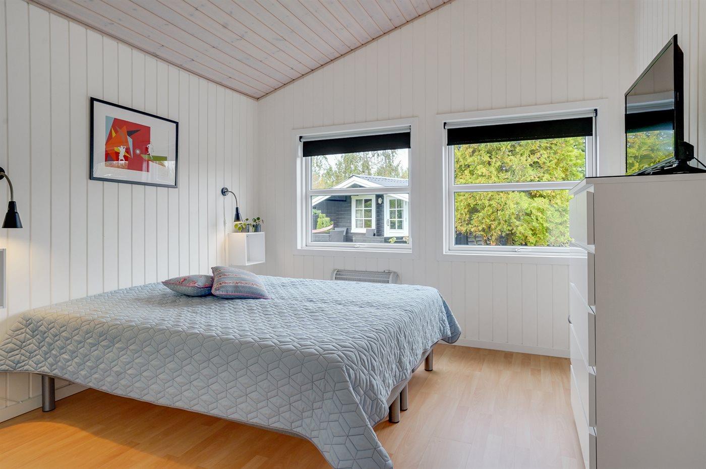 Der er i alt 4 soveværelser. Sovepladserne fordeler sig på: 4 sovepladser i dobbeltsenge. 3 sovepladser i enkeltsenge. Derudover er der 1 stk. barneseng.