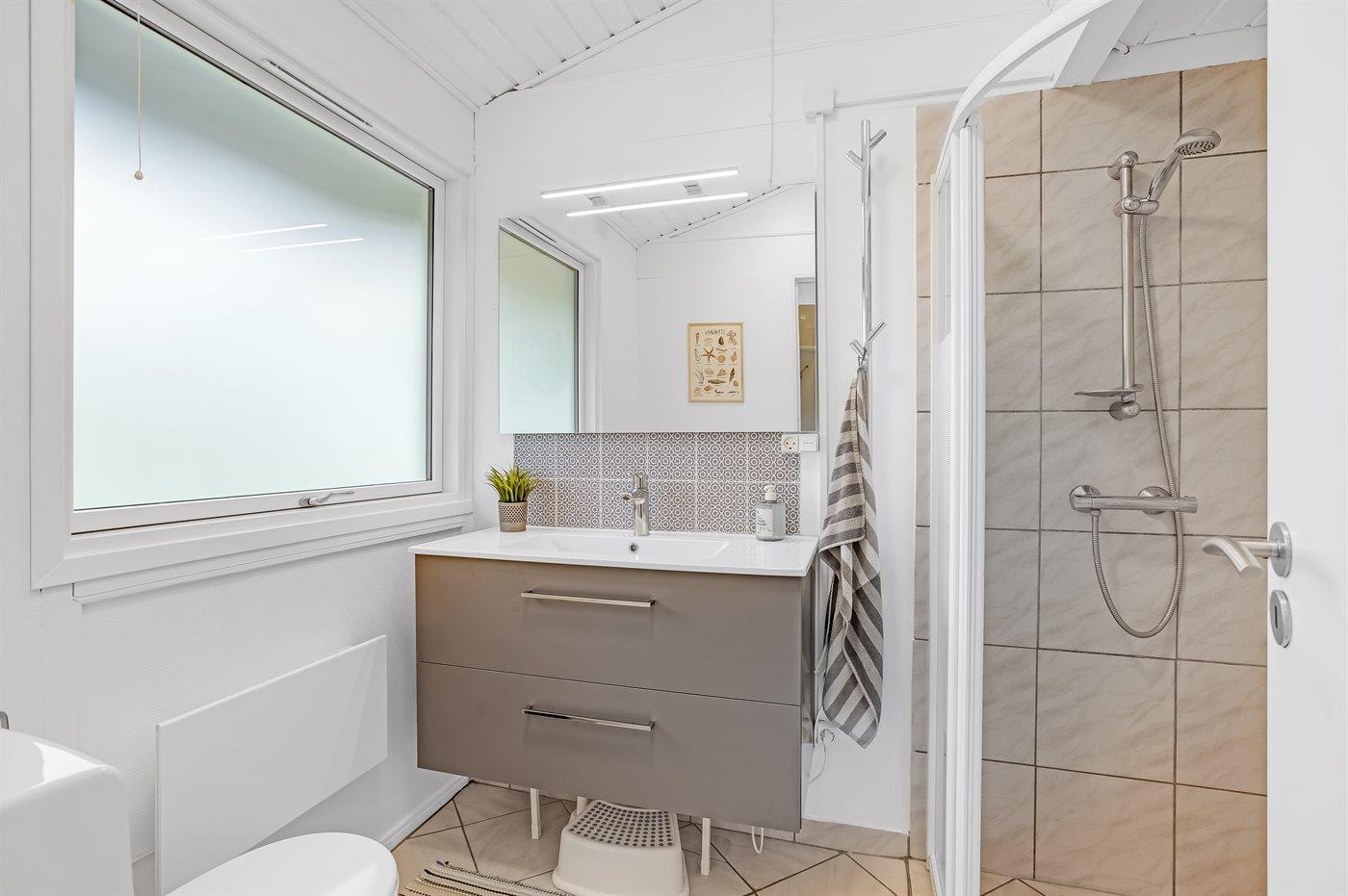 Der er 1 badeværelse med bruseniche og 1 toilet.