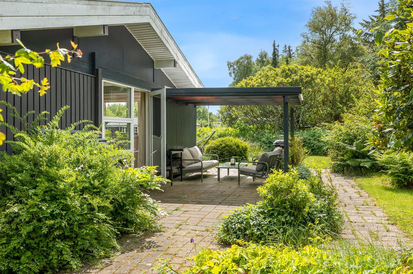 Udenfor finder I en stor åben terrasse samt en overdækket terrasse, hvor I kan nyde både solrige dage og lune aftener – uanset vejret. Der er grill til rådighed, så I kan tilberede lækre måltider i det fri. Den store grund giver rig mulighed for leg, boldspil samt afslapning i det fri og er ideel for både børn og voksne.