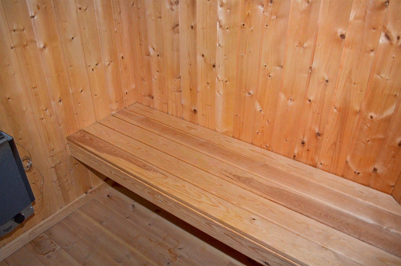 Der er 2 badeværelser med bruseniche og 2 toiletter. Der er gulvvarme på 2 badeværelser. I saunaen er der mulighed for afslapning.