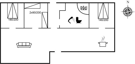 Der er i alt 3 soveværelser. Sovepladserne fordeler sig på: 4 sovepladser i dobbeltsenge. 2 sovepladser i enkeltsenge.
