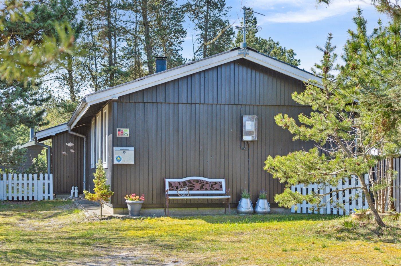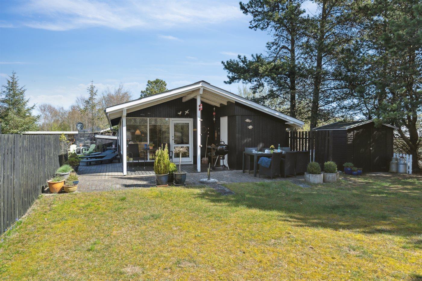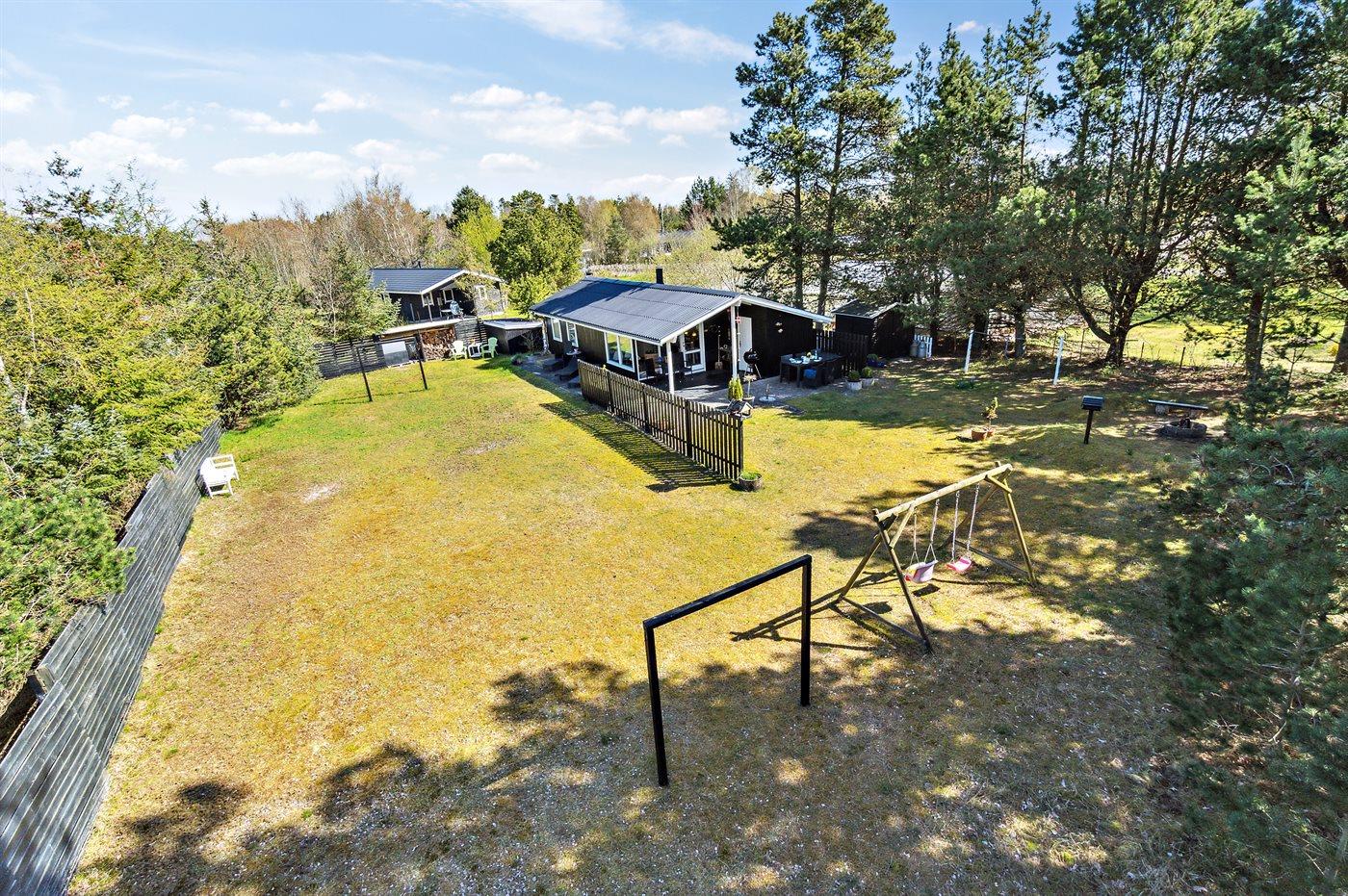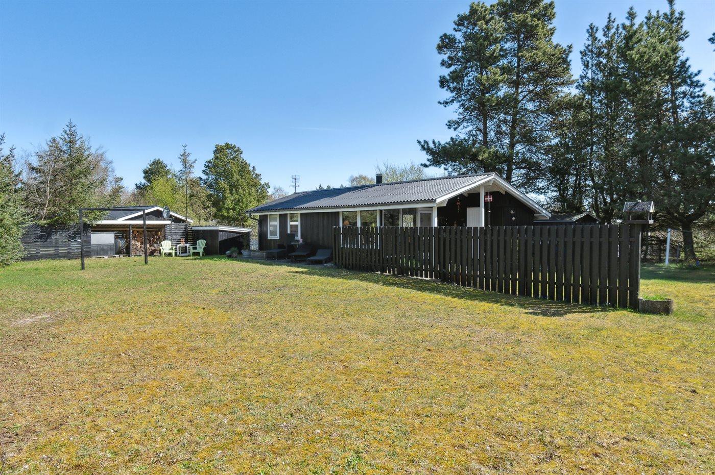 Ferieboligen er beliggende på en 1200 m² stor Grunden er indhegnet. Der er 500 m til havet. Der er 6570 m til fjorden. Nærmeste forretning er beliggende i en afstand af 900 m. Der er en golfbane i en afstand af 6080 m. Til ferieboligen hører 40 m² terrasseareal. Desuden er der 8 m² overdækket terrasse. Ligeledes er der adgang til udestue. Gynge. Sandkasse. Grill til rådighed. Parkering ved ferieboligen.