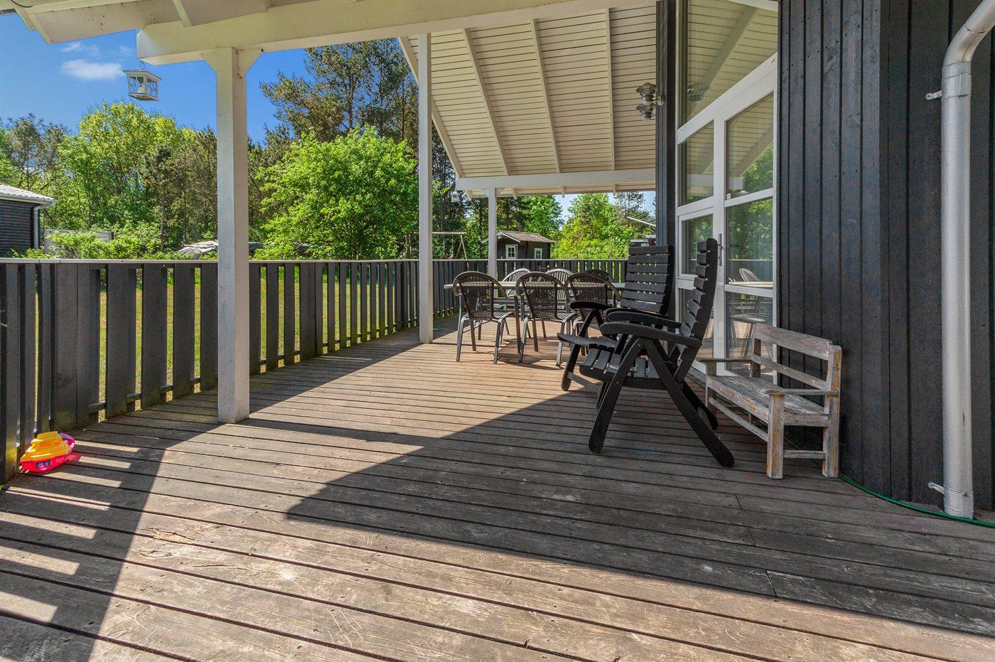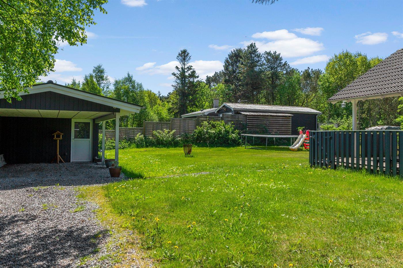 Ferieboligen er beliggende på en 1300 m² stor naturgrund. Der er 1000 m til havet. Nærmeste forretning er beliggende i en afstand af 2500 m. Der er en golfbane i en afstand af 3500 m. Til ferieboligen hører 70 m² terrasseareal. Heraf i alt 70 m² lukket terrasse. Der er redskabsrum. Gynge. Rutchebane. Bålsted. Der er carport til rådighed. Parkering ved ferieboligen.
