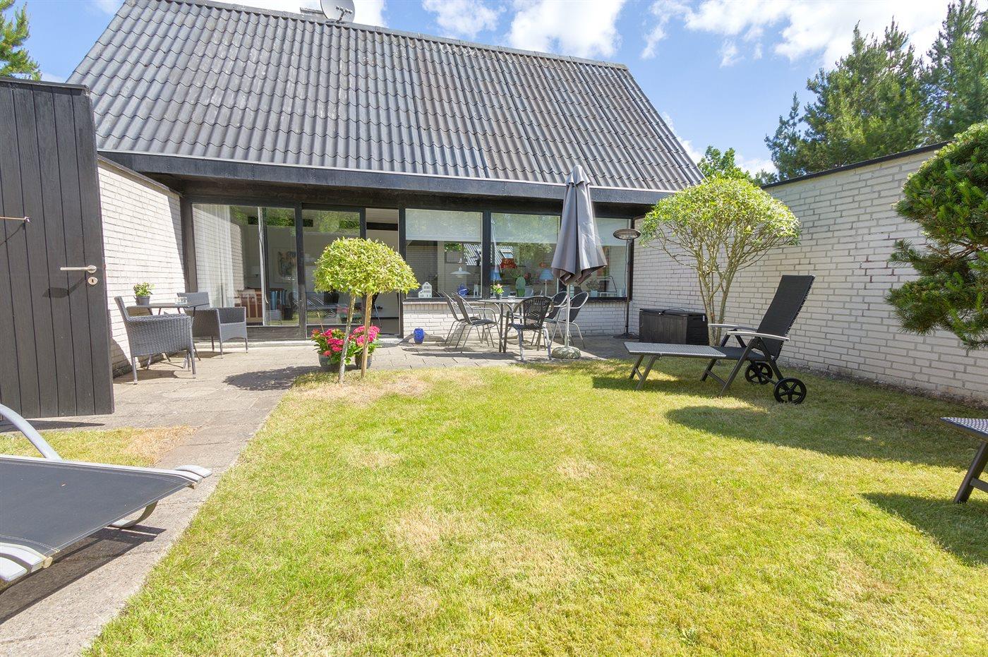 Ferieboligen er beliggende på en 1200 m² stor naturgrund. Der er 600 m til havet. Nærmeste forretning er beliggende i en afstand af 1500 m. Til ferieboligen hører 20 m² terrasseareal. Sandkasse. Grill til rådighed. Parkering ved ferieboligen.