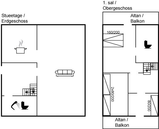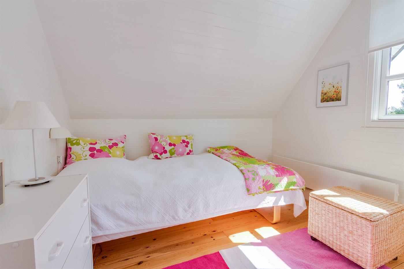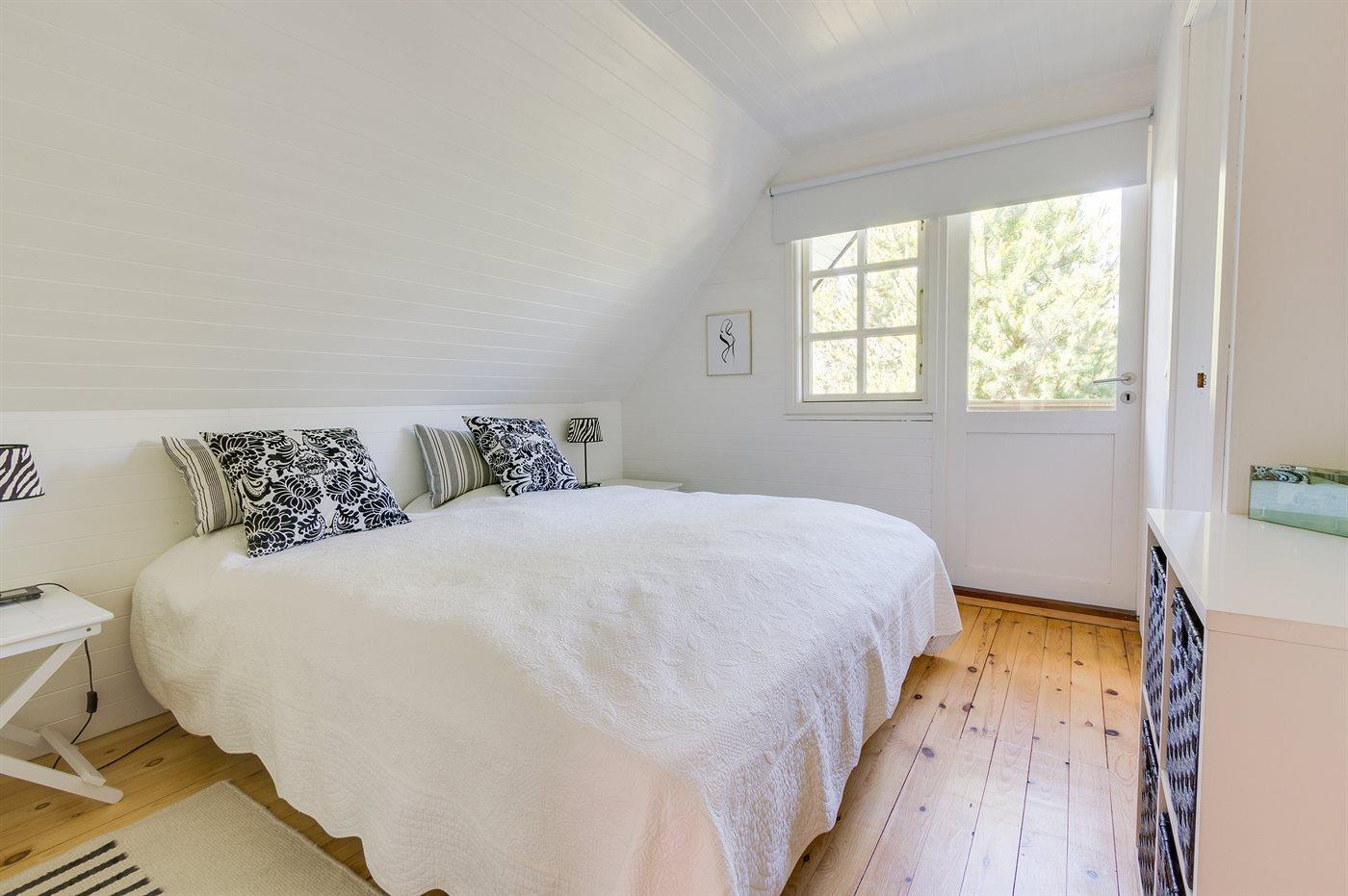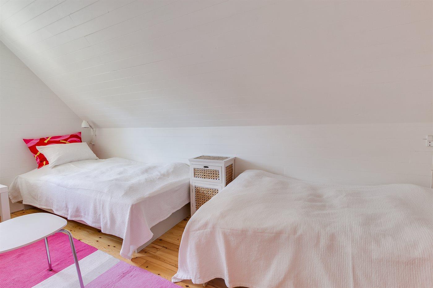 Der er i alt 3 soveværelser. Sovepladserne fordeler sig på: 2 sovepladser i dobbeltseng. 3 sovepladser i enkeltsenge.