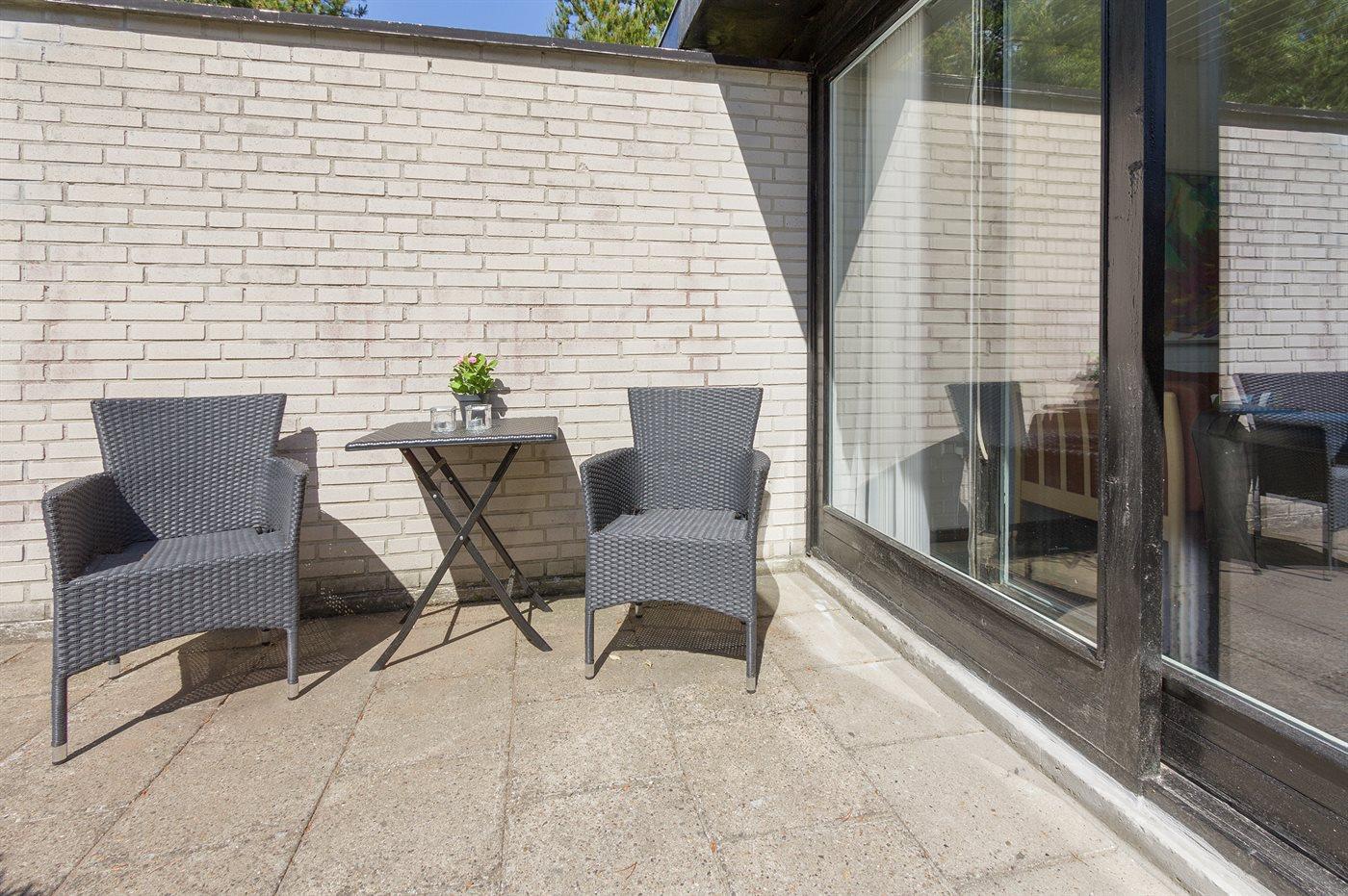 Hyggeligt sommerhus i Hou med lukket gårdhave, to balkoner og tæt på havet.