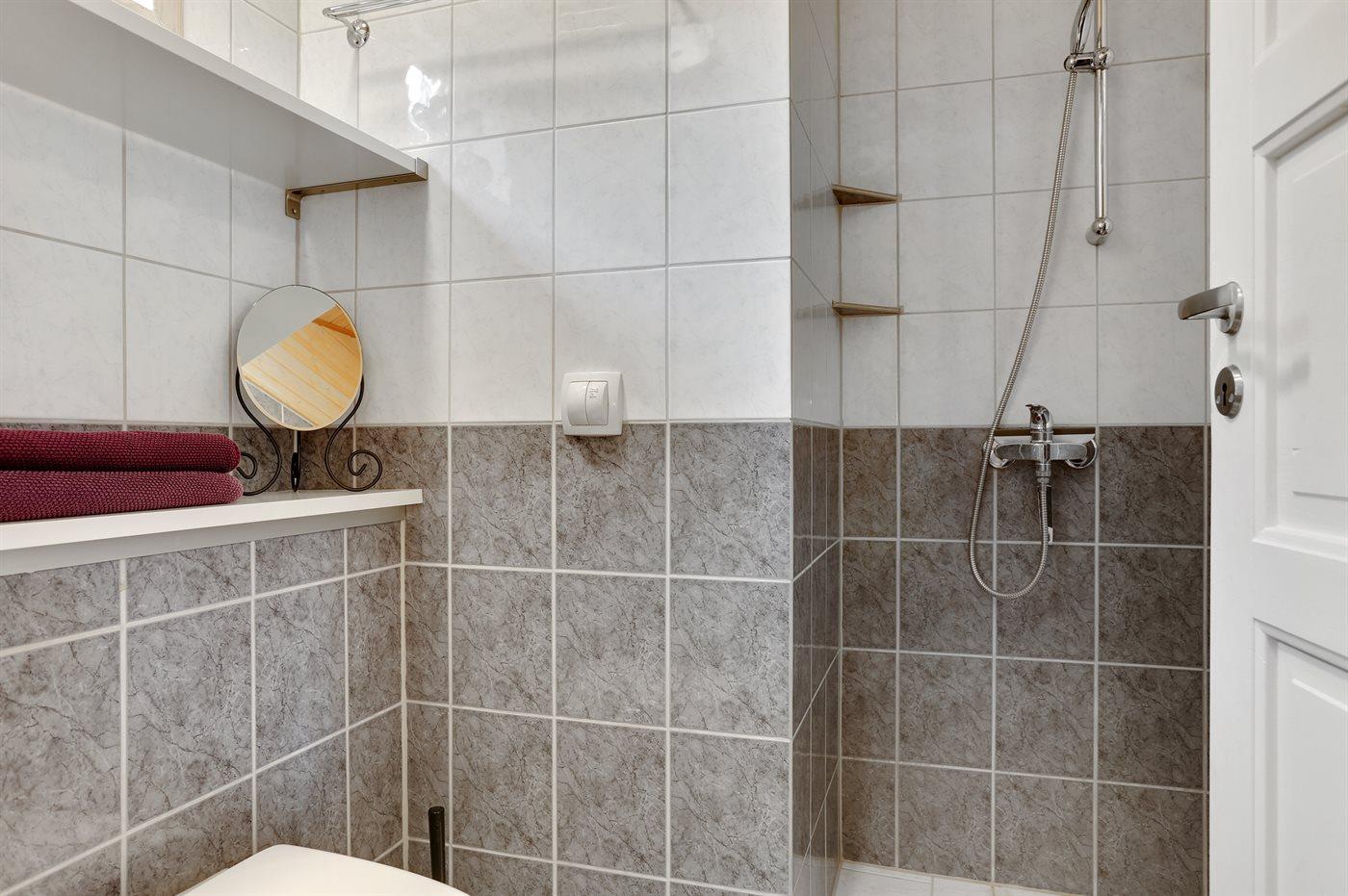 Der er 2 badeværelser med bruseniche og 2 toiletter. Der er gulvvarme på 2 badeværelser.
