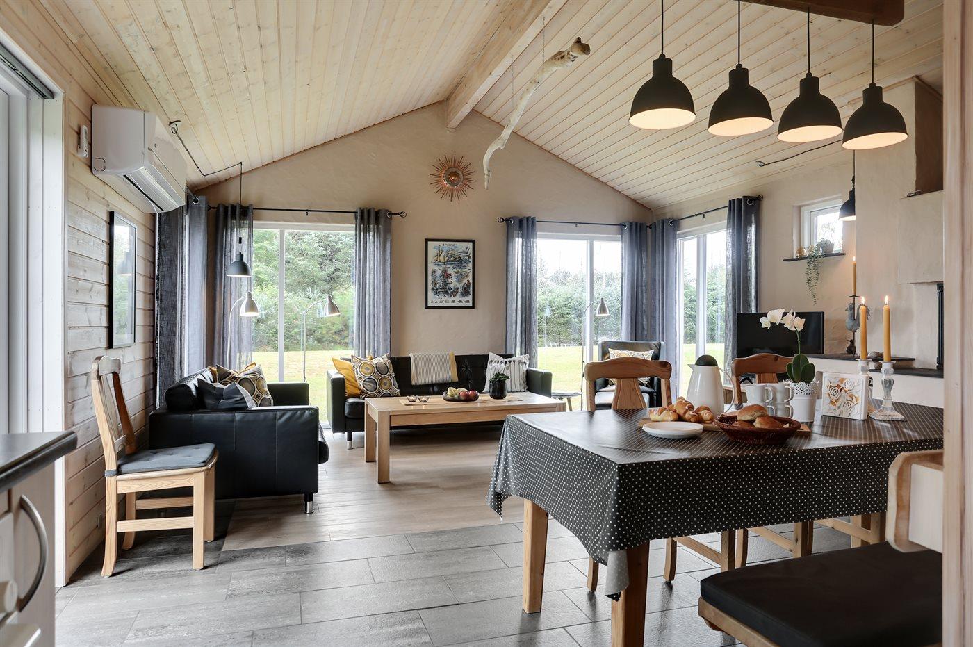 Sommerhuset egner sig til 7 personer. Ferieboligen er på 118 m² og er bygget i 2002. Det er ikke tilladt at medbringe husdyr. Ferieboligen er udstyret med energibesparende varmepumpe. Ferieboligen har vaskemaskine. Frysekapacitet på 64 liter. Der er desuden brændeovn. Til de små er der 1 stk. barnestol.