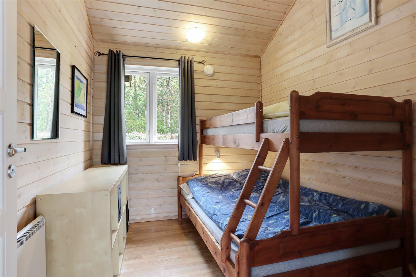 Der er i alt 4 soveværelser. Sovepladserne fordeler sig på: 6 sovepladser i dobbeltsenge. 1 soveplads i enkeltseng. Derudover er der 1 stk. barneseng.