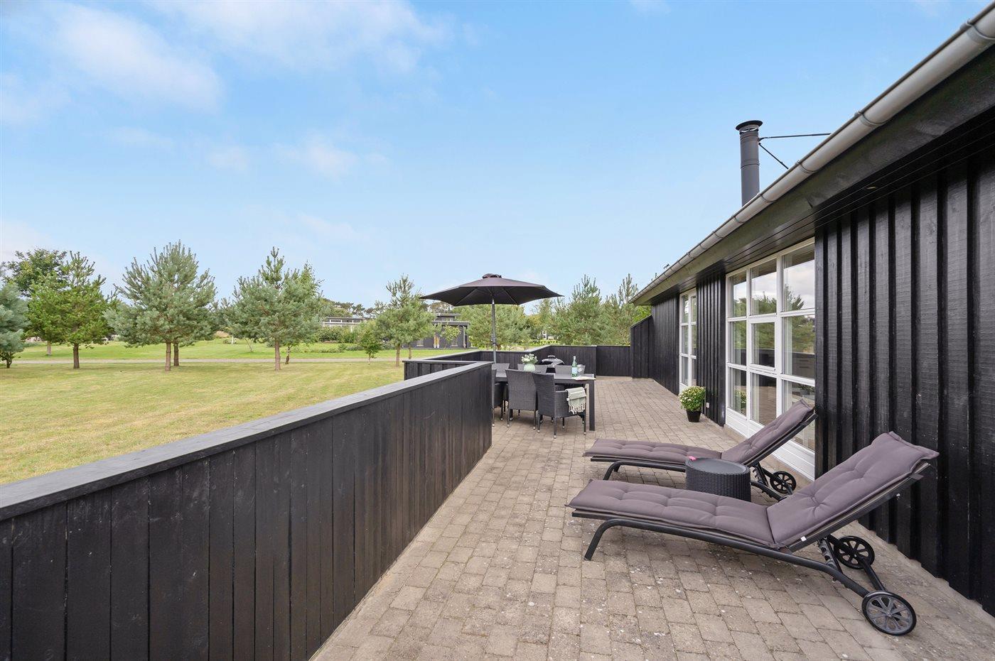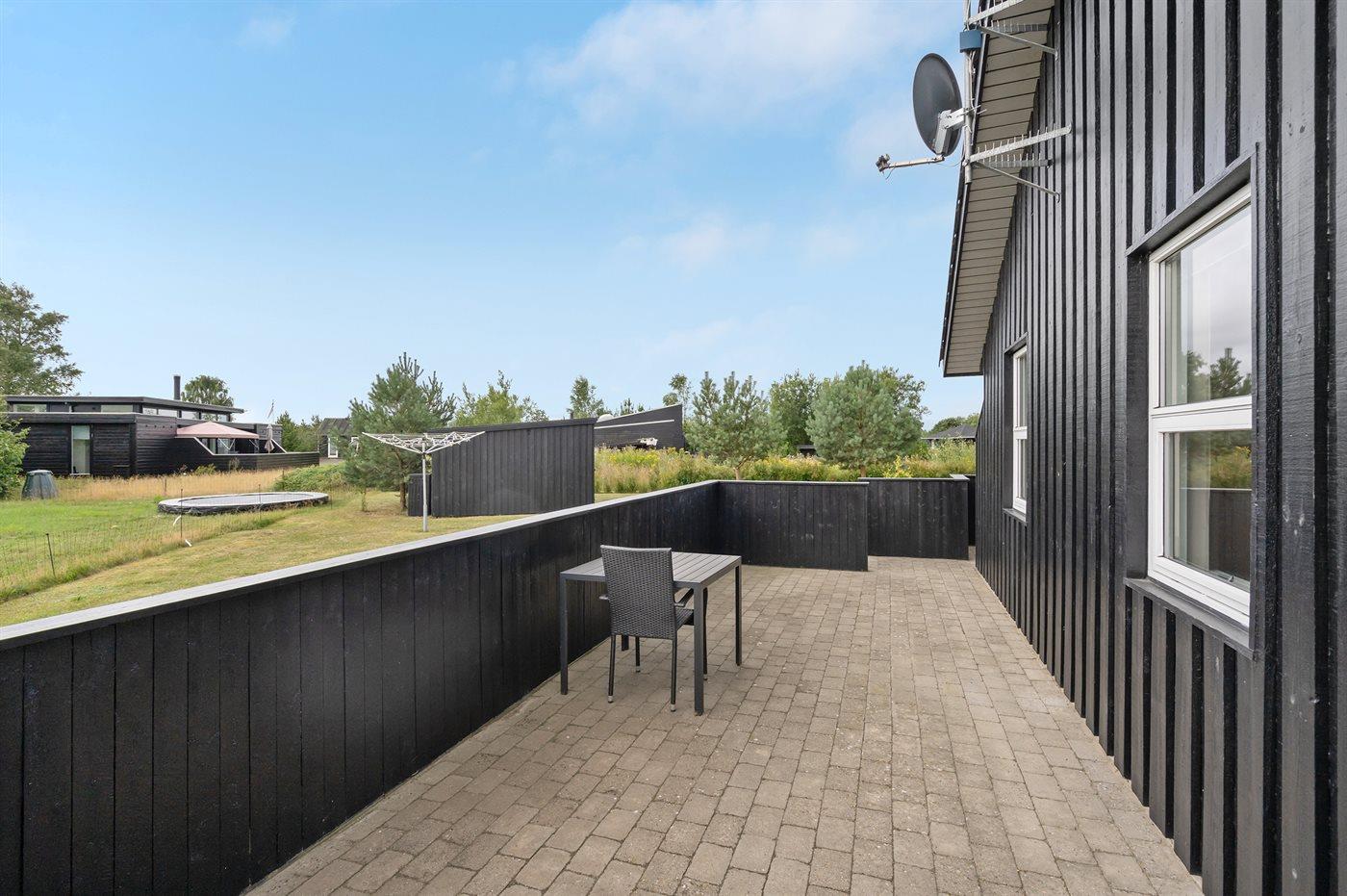 Ferieboligen er beliggende på en 1289 m² stor havegrund. Der er 1000 m til havet. Nærmeste forretning er beliggende i en afstand af 2500 m. Til ferieboligen hører 80 m² terrasseareal. Der er redskabsrum. Der er to grill til rådighed (én til gas og én til kul). Parkering ved ferieboligen.