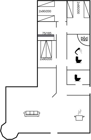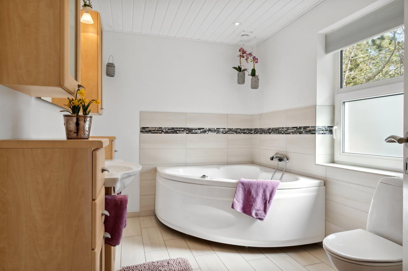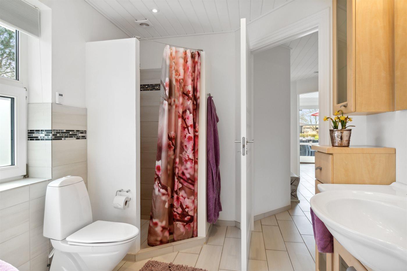Der er 1 badeværelse med bruseniche og 2 toiletter, heraf 1 gæstetoilet. Der er gulvvarme på 1 badeværelse. Der er gulvvarme på gæstetoilettet.