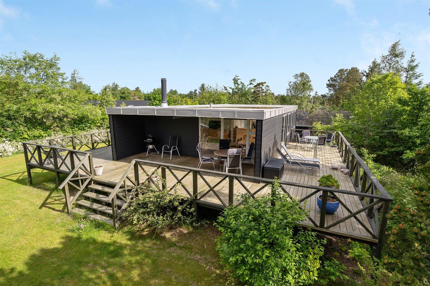 Skønt sommerhus beliggende på en stor grund tæt på stranden mellem Hou og Hals. Rundt om huset findes en skøn, stor og højtbeliggende terrasse med udsigt over den skrånende grund.