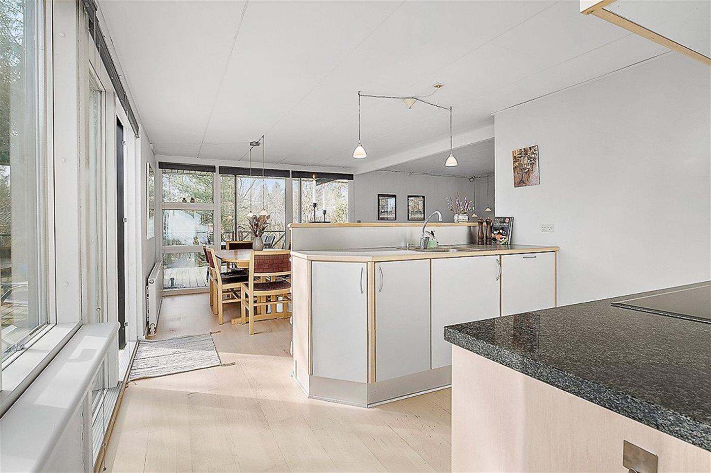 Køkkenet er udstyret med 1 køleskab. Der er 4 keramiske kogeplader, varmluftovn samt opvaskemaskine.