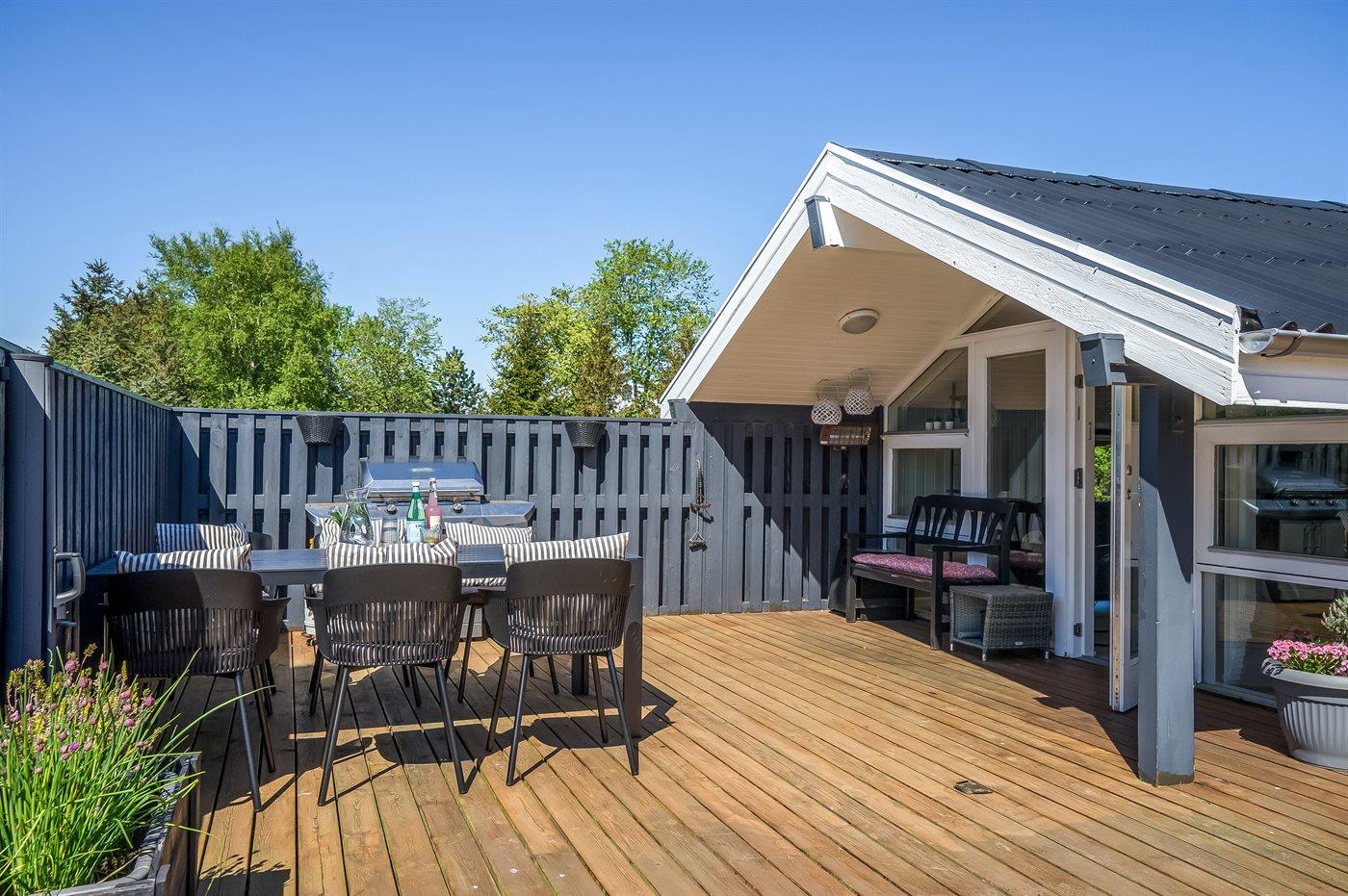 Hyggeligt sommerhus med stor lukket terrasse