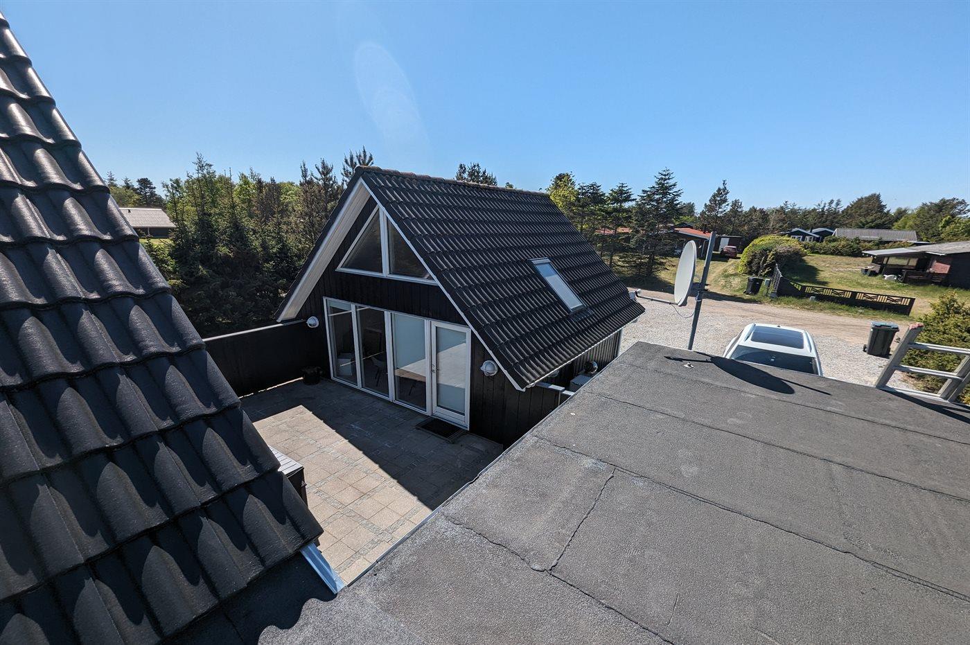 Ferieboligen er beliggende på en 2200 m² stor havegrund. Der er 150 m til havet. Nærmeste forretning er beliggende i en afstand af 1500 m. Til ferieboligen hører 60 m² terrasseareal. Udgang til altan på 1. sal. Grill til rådighed. Parkering ved ferieboligen.