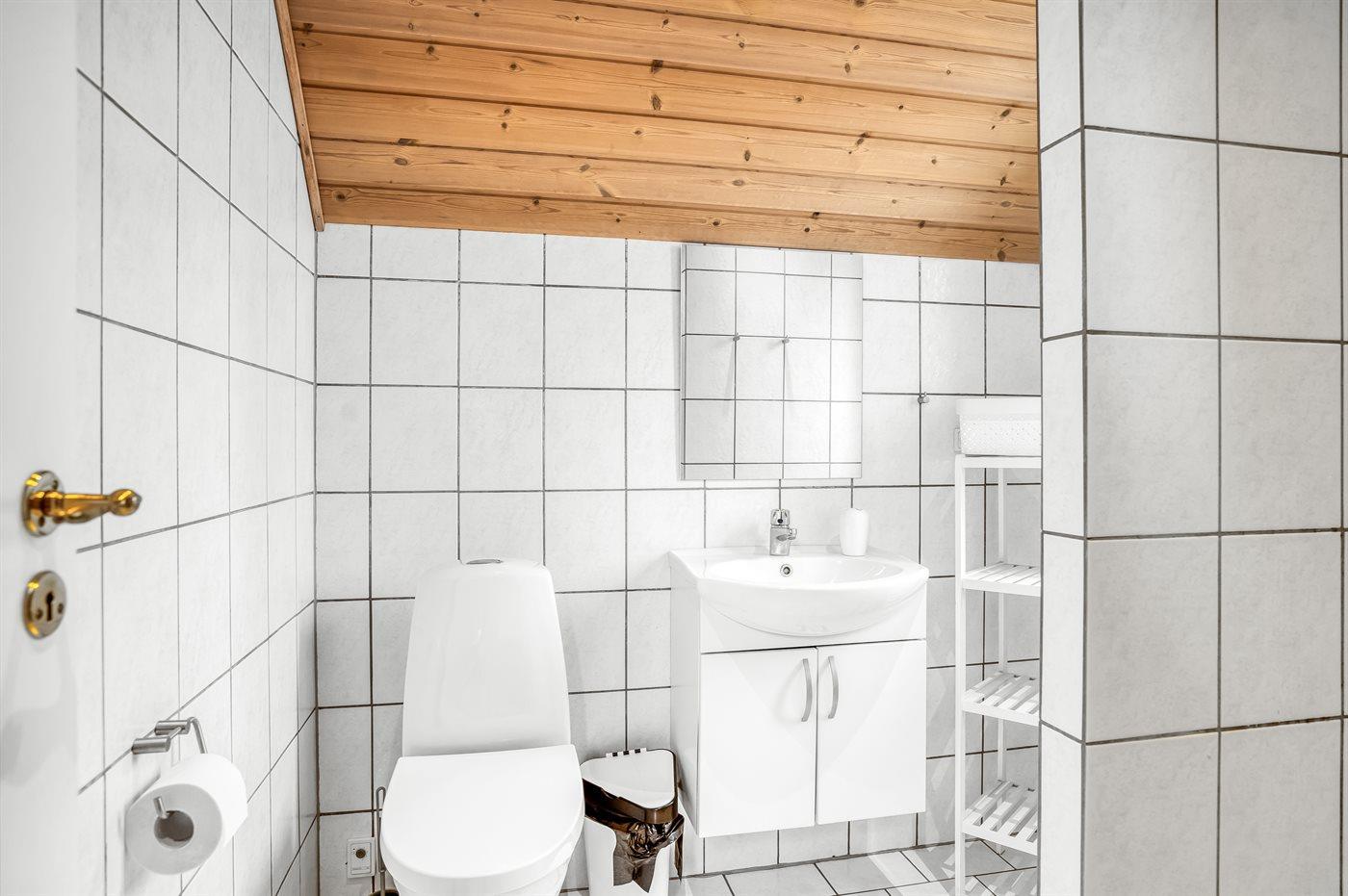 Der er 2 badeværelser med bruseniche og 3 toiletter, heraf 1 gæstetoilet. Der er gulvvarme på 2 badeværelser. Der er gulvvarme på gæstetoilettet. I saunaen er der mulighed for afslapning.
