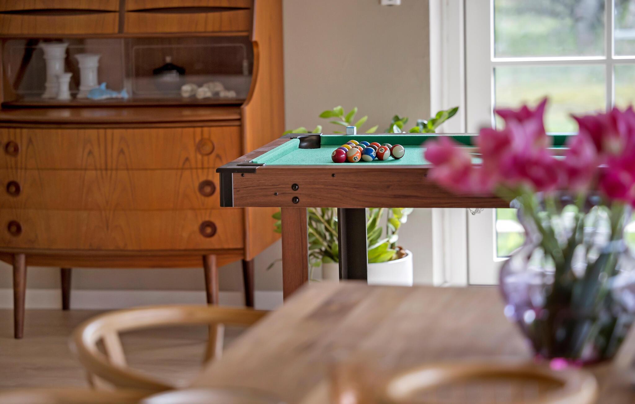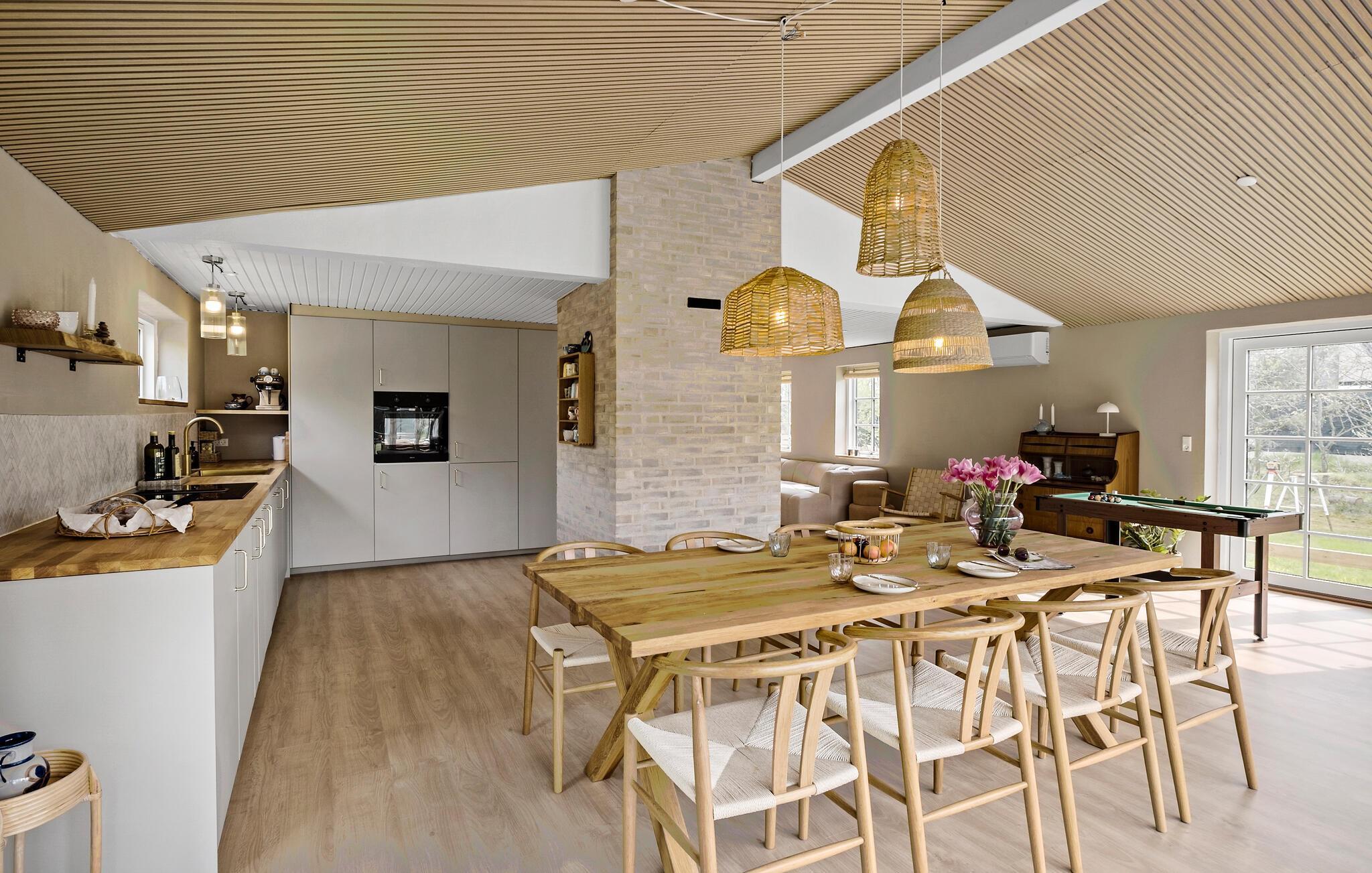 Tag familien under armen og rejs nordenfjords, hvor der venter jer en dejlig base i dette attraktive hus kun få minutters gang fra stranden i Hou. Indvendigt fremtræder huset virkelig flot med højt til loftet, velvalgte materialer og delvist fritlagte murværk, der giver det indre et på én gang rustikt og moderne udtryk og gør det nemt at slappe af med det samme, I ankommer. Hvis vejret bider lidt, kan I fyre op i brændeovnen og nyde dens varme knitren, mens kokkene kræser om livretterne i det veludstyrede køkken, og andre tager et slag pool i stuen. Nyd dagens måltider ved spisebordet med en herlig udsigt til haven, inden I runder aftenen af med brætspil eller en god film til sent.