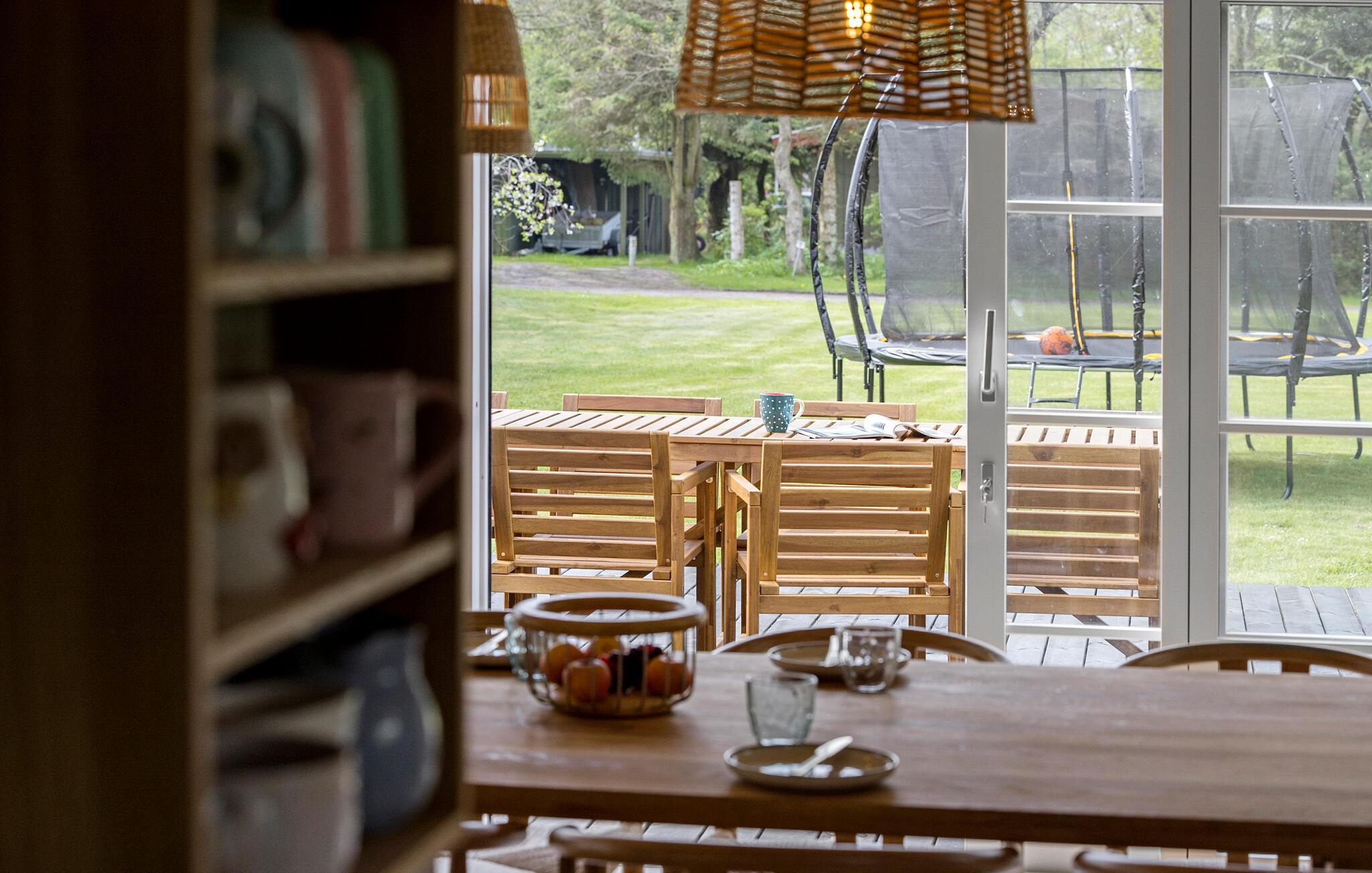 Huset ligger på en stor og dejlig grund, hvor der er lagt op til mange timers sjov og afslapning, når vejret er godt. De voksne kan nyde solen, en kop kaffe og en god bog på terrassen, mens børnene boltrer sig i den store have, hvor de både får trampolin og fodboldmål at boltre sig med.