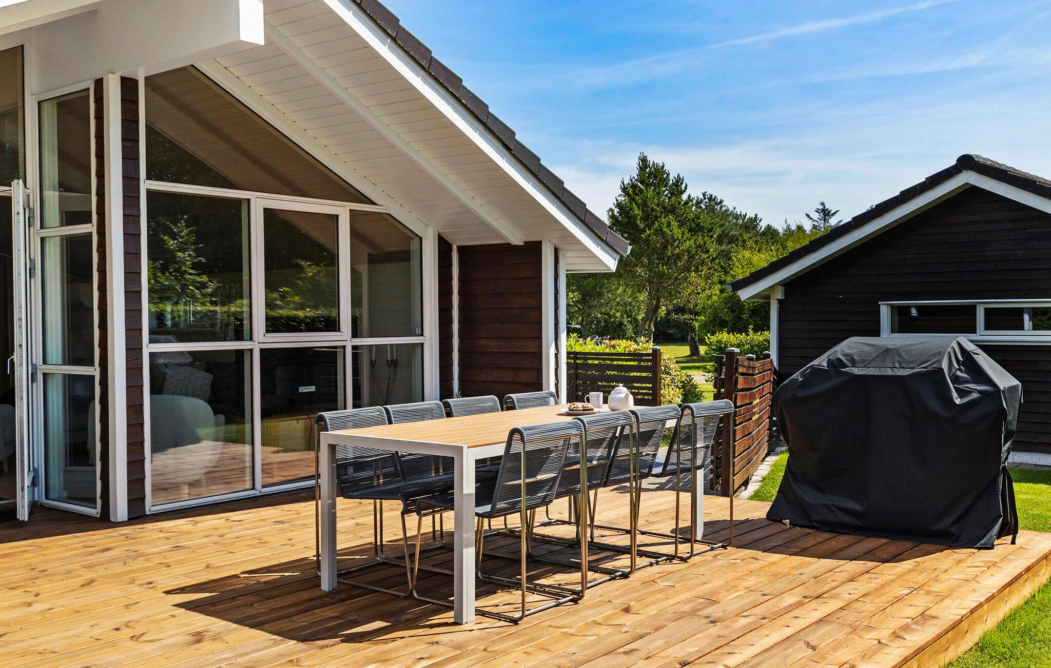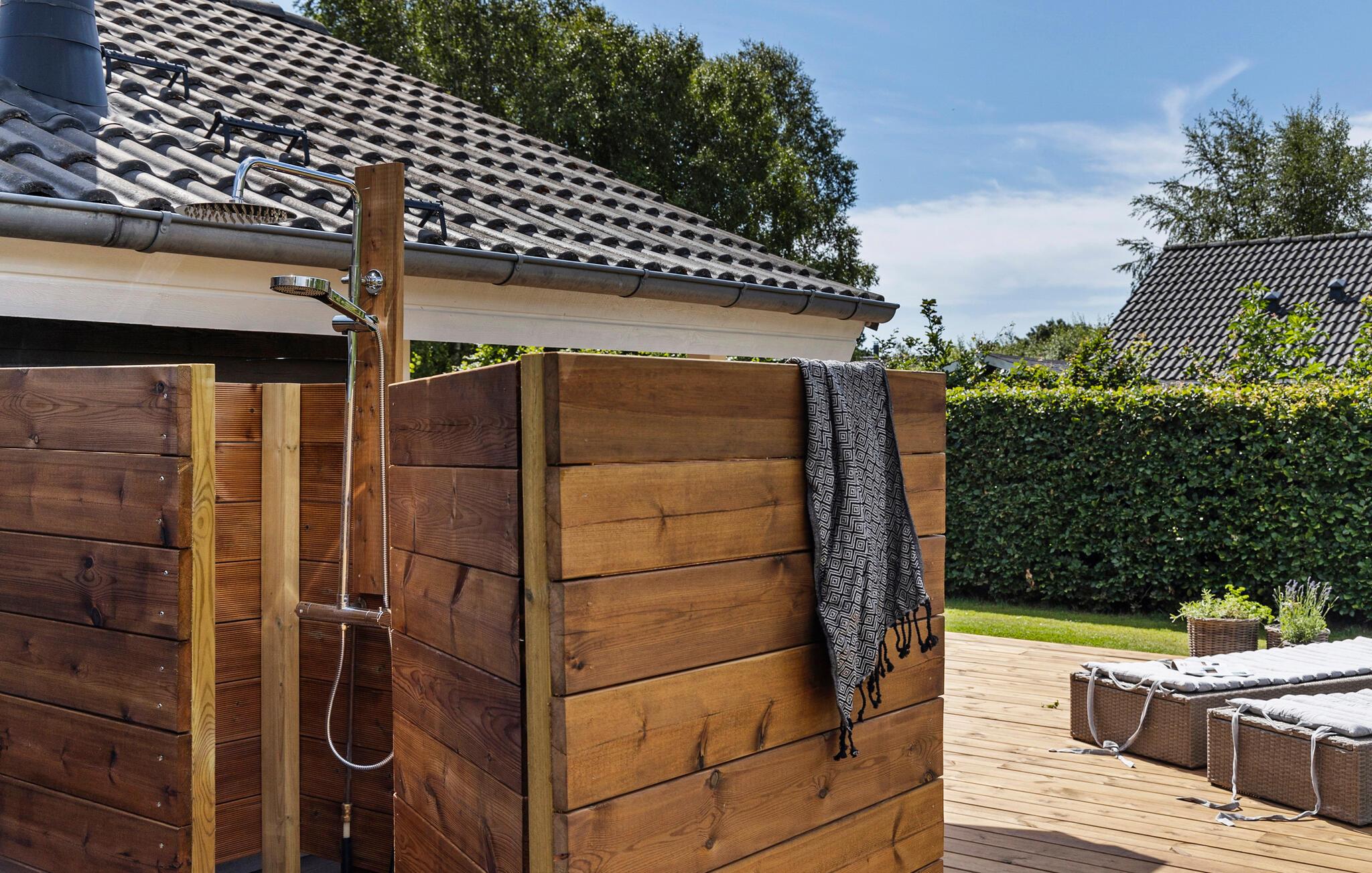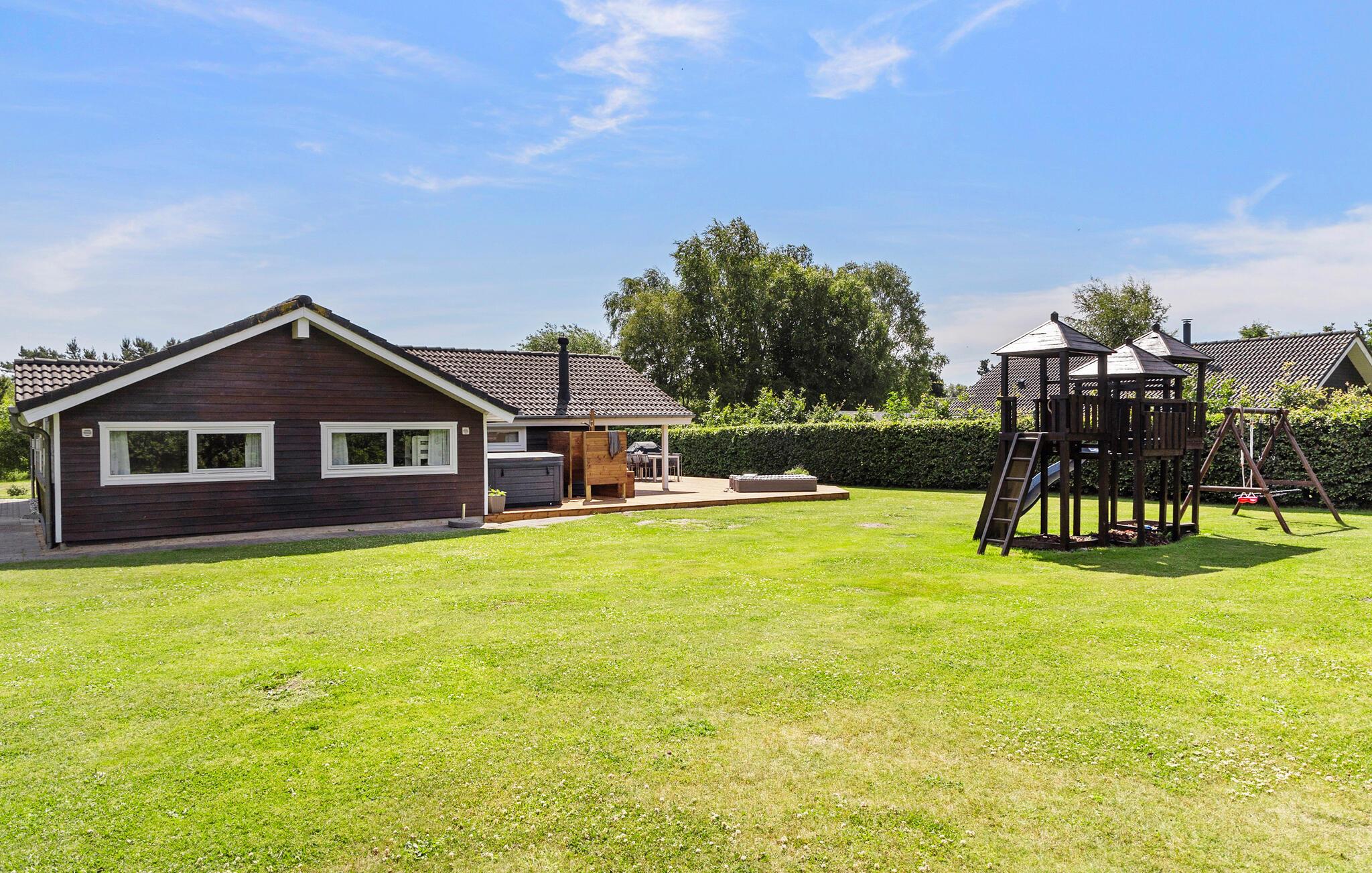 Den store have lokker nemt børnene ud i den friske luft med sine dejlige legeområder. Grunden er dejligt sikker, for den er helt lukket af, så både små børn og hunde kan trygt færdes på egen hånd. Nyd solen i de behagelige liggestole, snup et brusebad i det fri eller slap af i spabadet, mens andre gør grillen klar til en stemningsfuld middag.