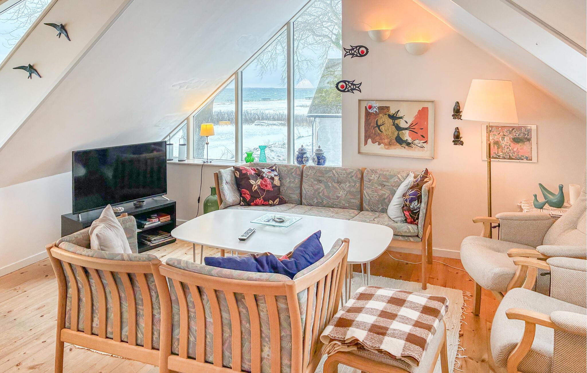Dette hus er den perfekte base til en pause fra hverdagen. Masser af naturligt lys strømmer ind gennem de store vinduer og tilbyder en smuk havudsigt. Slå jer ned med en kop kaffe, se skyerne drive forbi eller læn jer tilbage med en god bog ved brændeovnen.