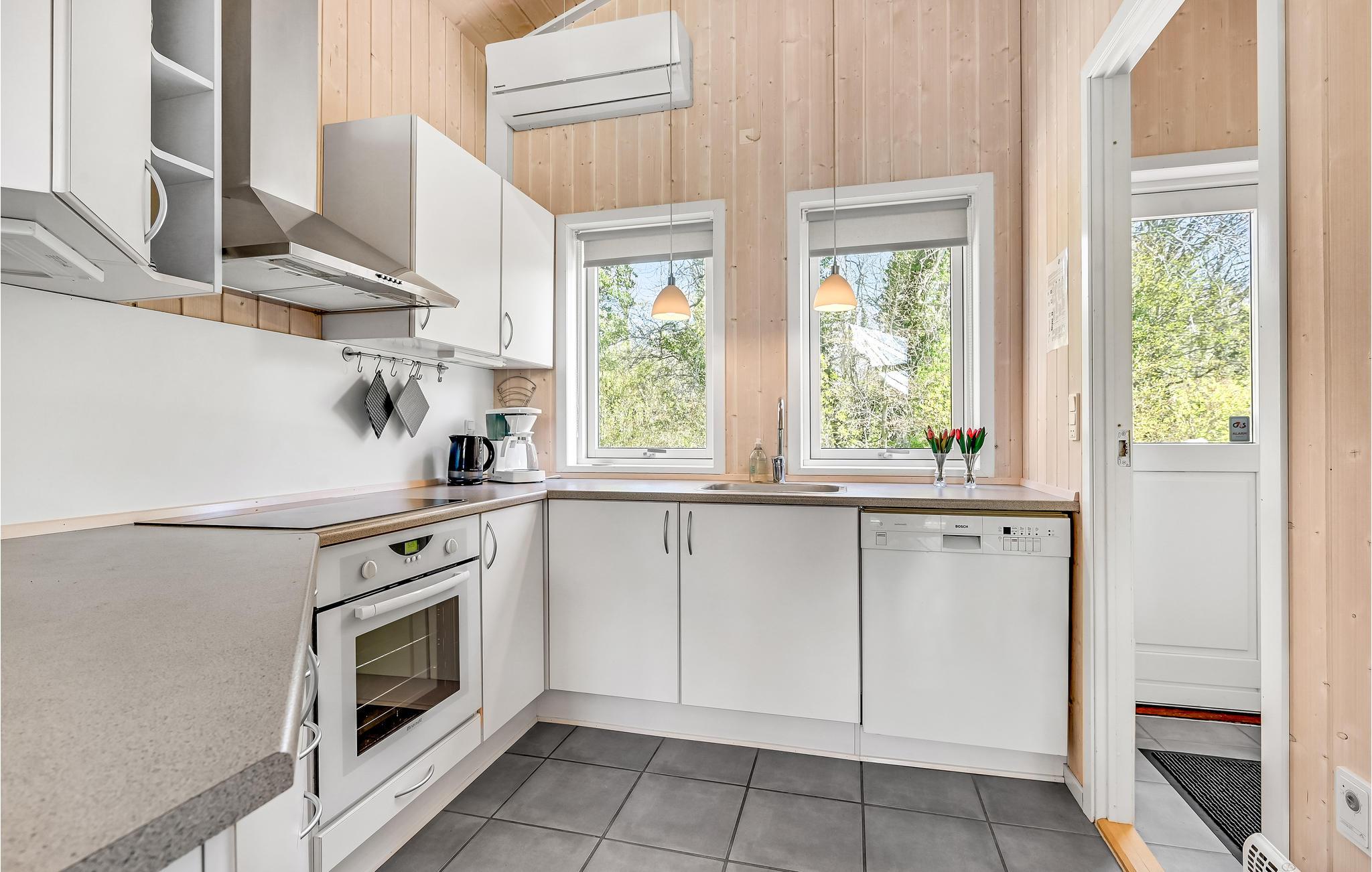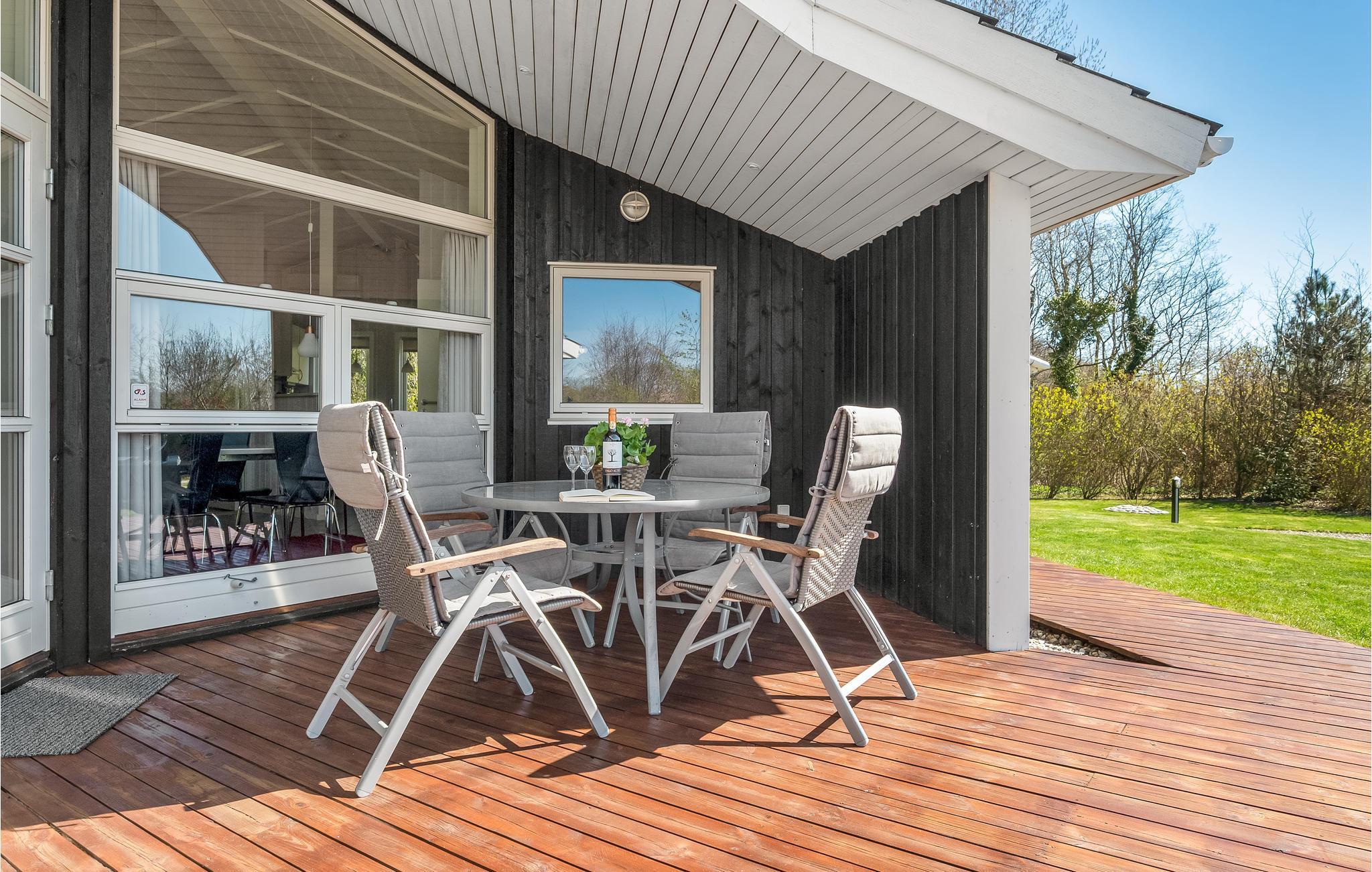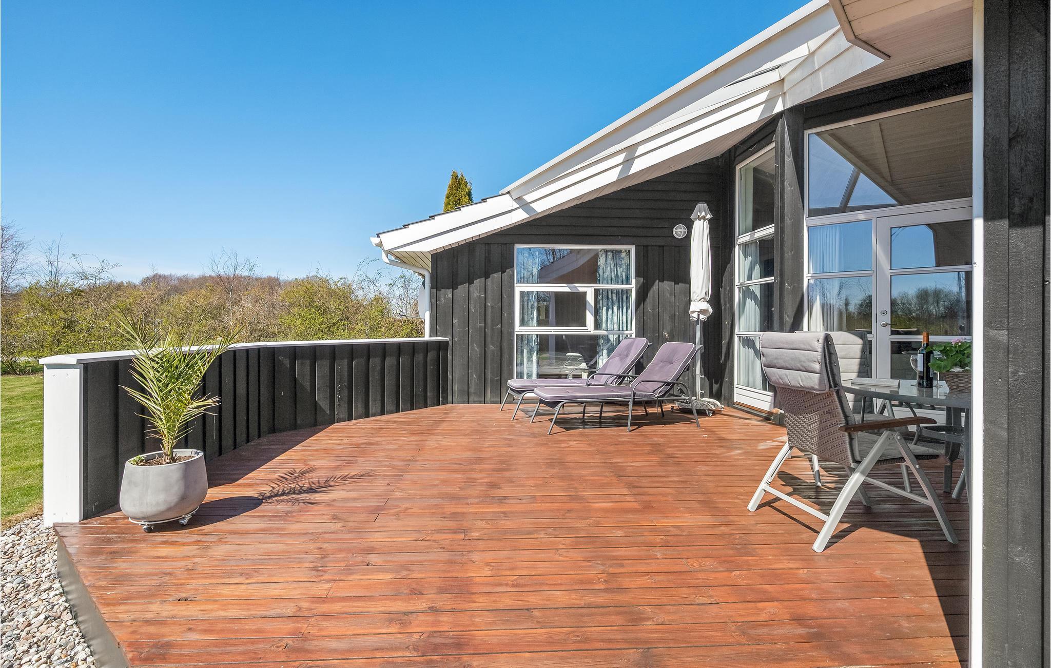 Dejligt træferiehus beliggende i et nyere mindre feriehusområde i Hou. Det ligger på en stor naturgrund med gode muligheder for udendørsaktiviteter. Grunden grænser op til en mindre skov, hvorfra der går en lille sti ned til vandet. Det er lyst og smagfuldt indrettet og har ingen faste tæpper. Der er fint plads til to familier med fire soveværelser samt to badeværelser, hvoraf det store baderum har spabad og direkte adgang til sauna. Til huset hører nogle skønne terrasser, hvor I kan nyde de lune sommerdage og aftener med et glas vin foran grillen. Huset og området er velegnet til lystfiskere.