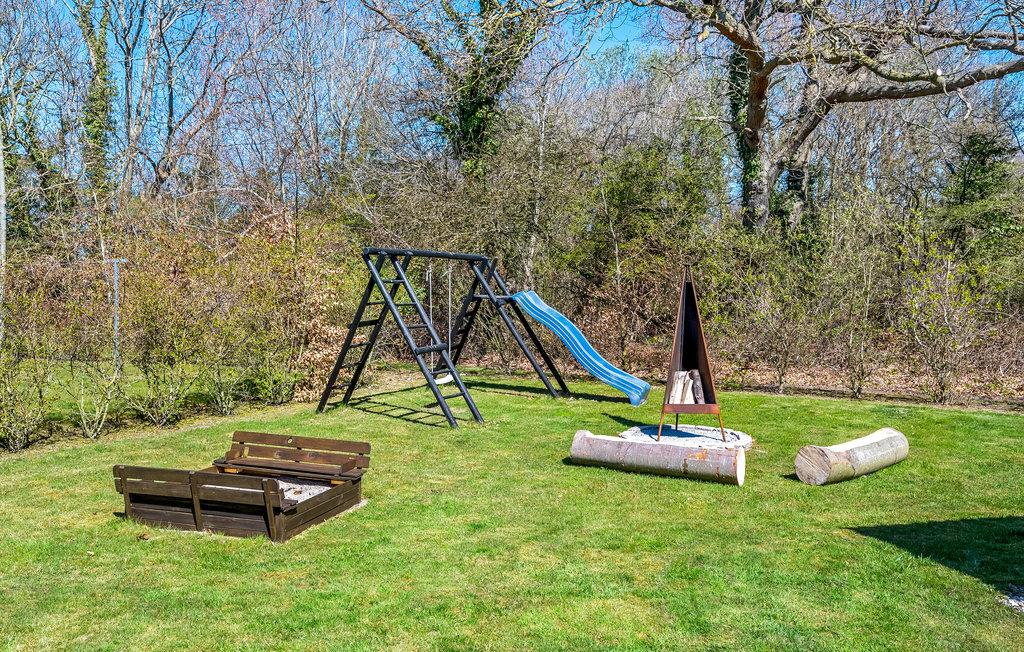Hyggeligt træferiehus i Hou med sauna, spabad og stor naturgrund tæt på vandet.
