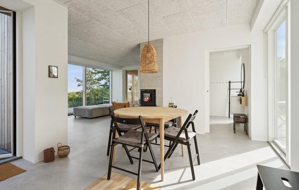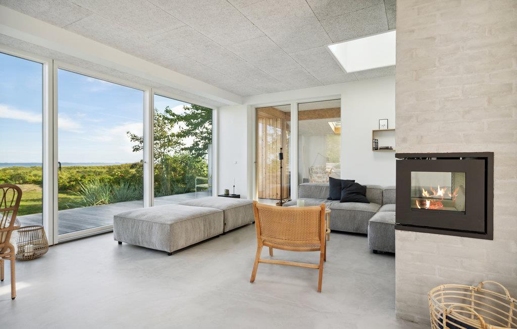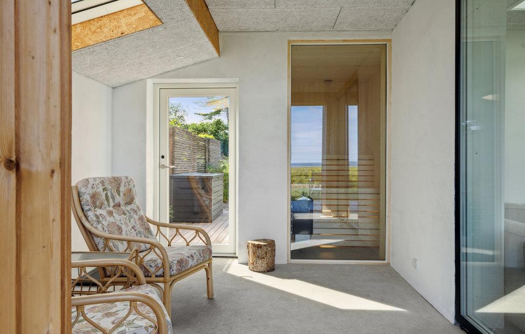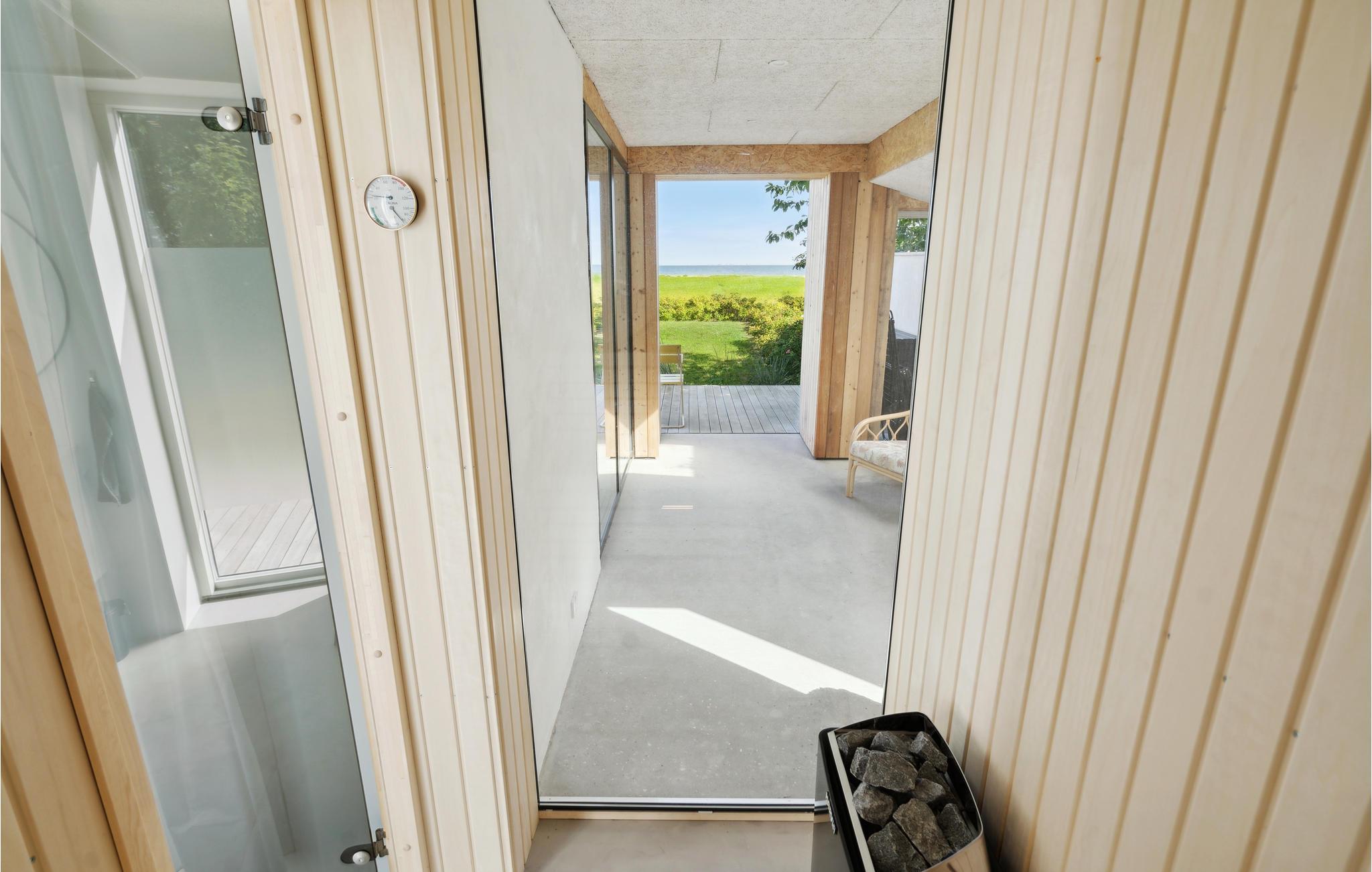 Glæd jer til en familieferie i første række til vandet og en herlig base i dette indbydende hus. Den moderne arkitektur og rummenes orientering mod kysten skaber nogle fantastiske rammer, som virker meget fredfyldte. Læn jer godt tilbage i stuens komfortable møbler, lyt til flammernes knitren i pejsen og nyd husets lækre, moderne faciliteter. Udsigten er nærmest underholdning nok i sig selv, men der er selvfølgelig også et fjernsyn, så I kan flade ud og se en god serie efter dagens eventyr. I køkkenet kan I give jer i kast med ferieretterne og dække op udendørs på solskinsdagene. Trænger I til at gøre noget godt for de ømme muskler, kan I sætte jer til rette i saunaen, nyde udsigten over vandet og tage et friskt skyl under bruseren.