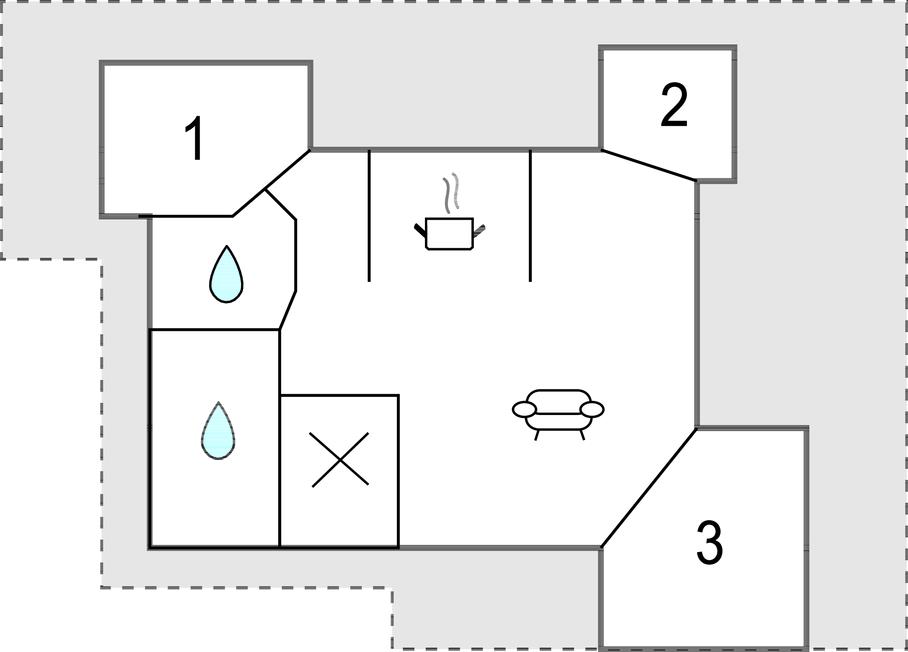 Opholdsstue/køkken - 2 Sovepladser. (Dobbeltseng(e)).