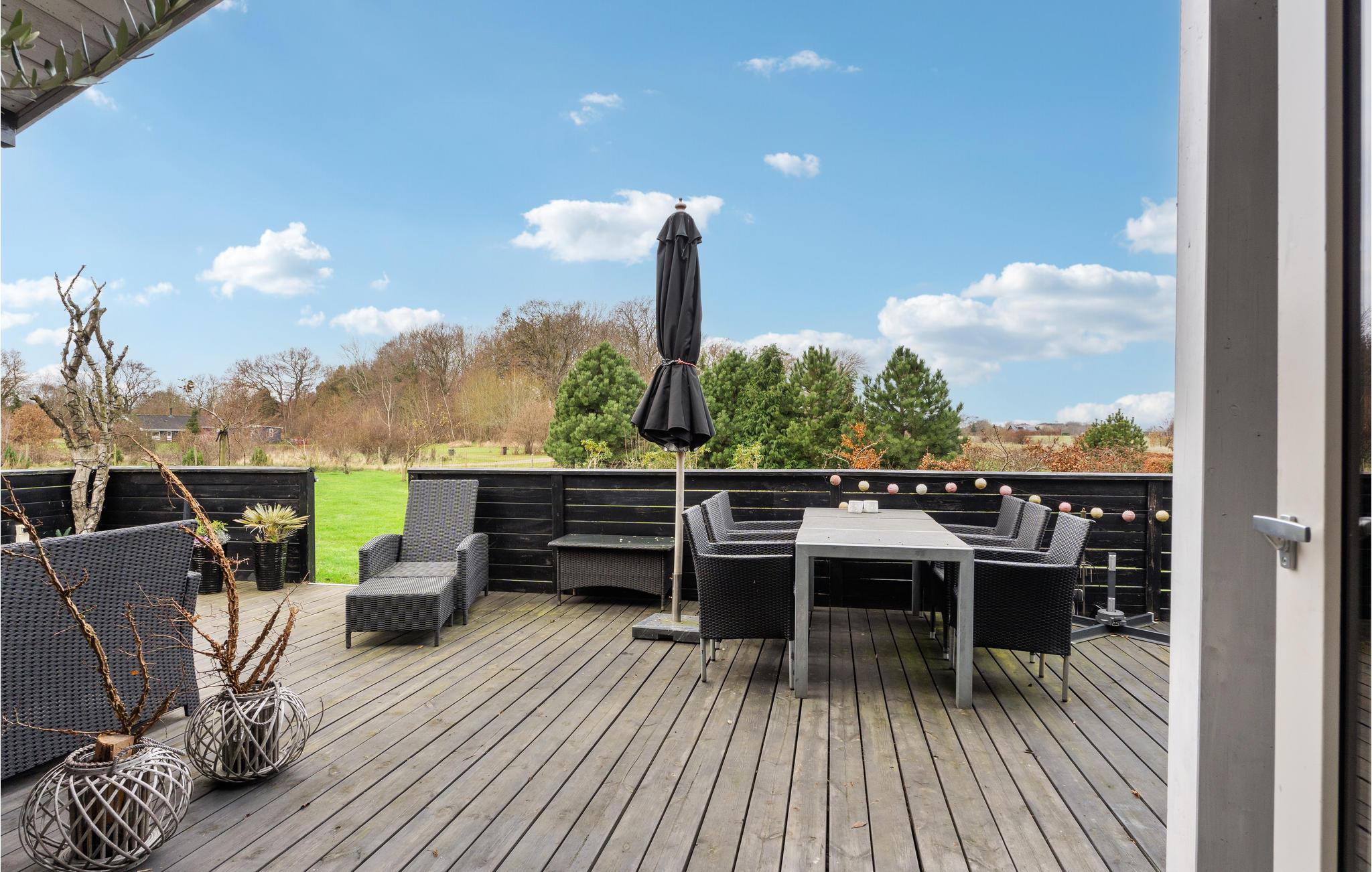 Huset har en dejlig, familievenlig have med legeredskaber og en rummelig træterrasse, hvor I kan få sol på næsten alle tidspunkter af dagen.