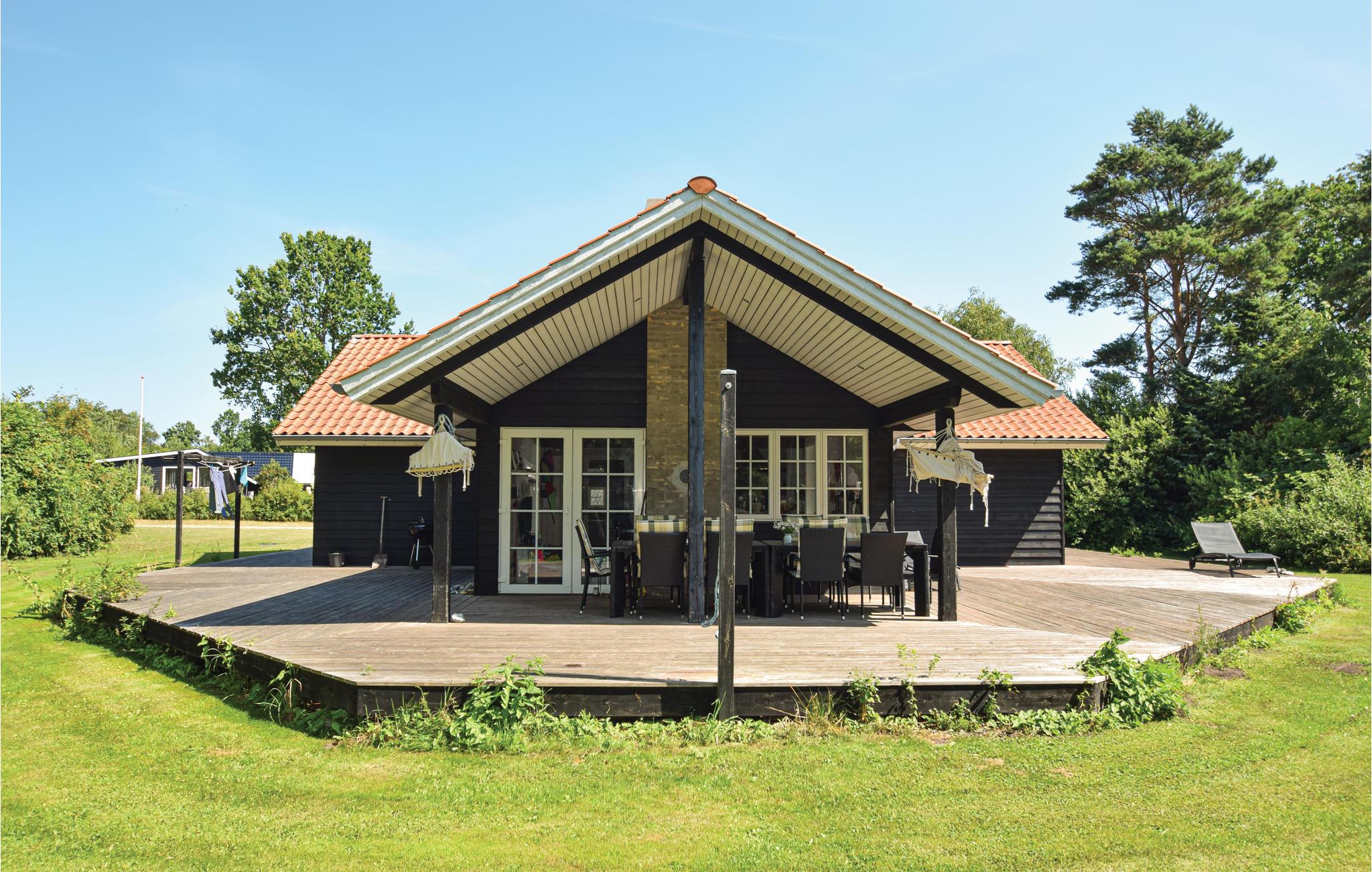 Lækkert feriehus på Langeland med stor terrasse, sauna og spabad tæt på børnevenlig strand.