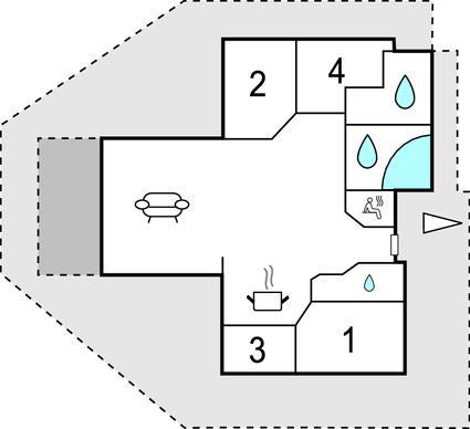 Badeværelse 4m2 (nr. 2) - WC. Varmt og koldt vand. Bruser