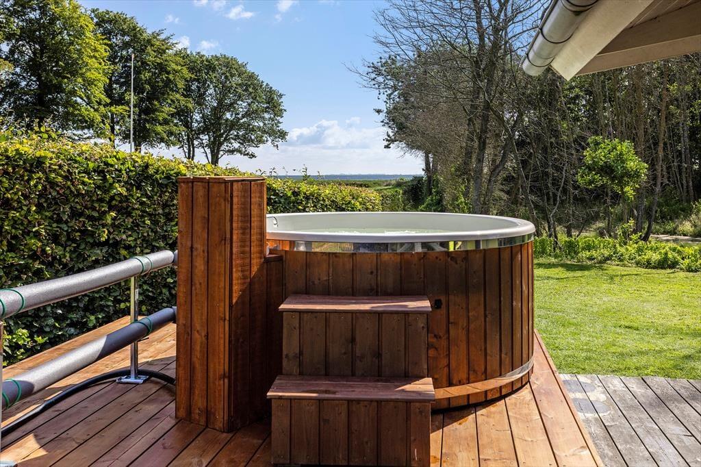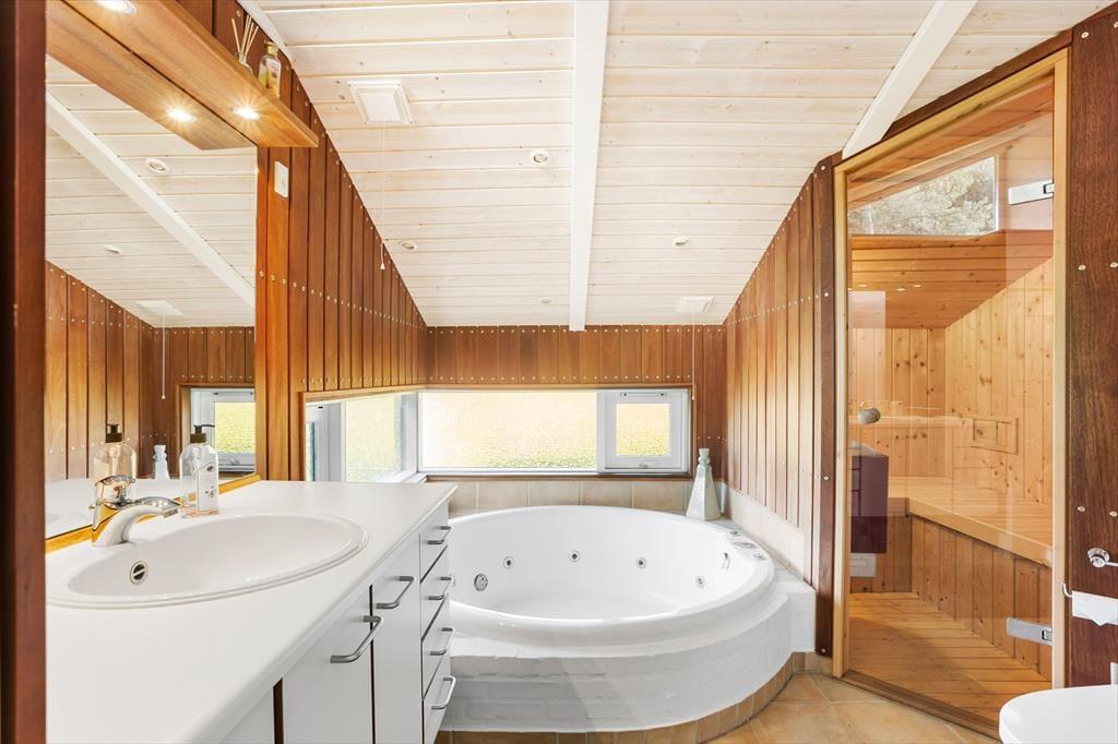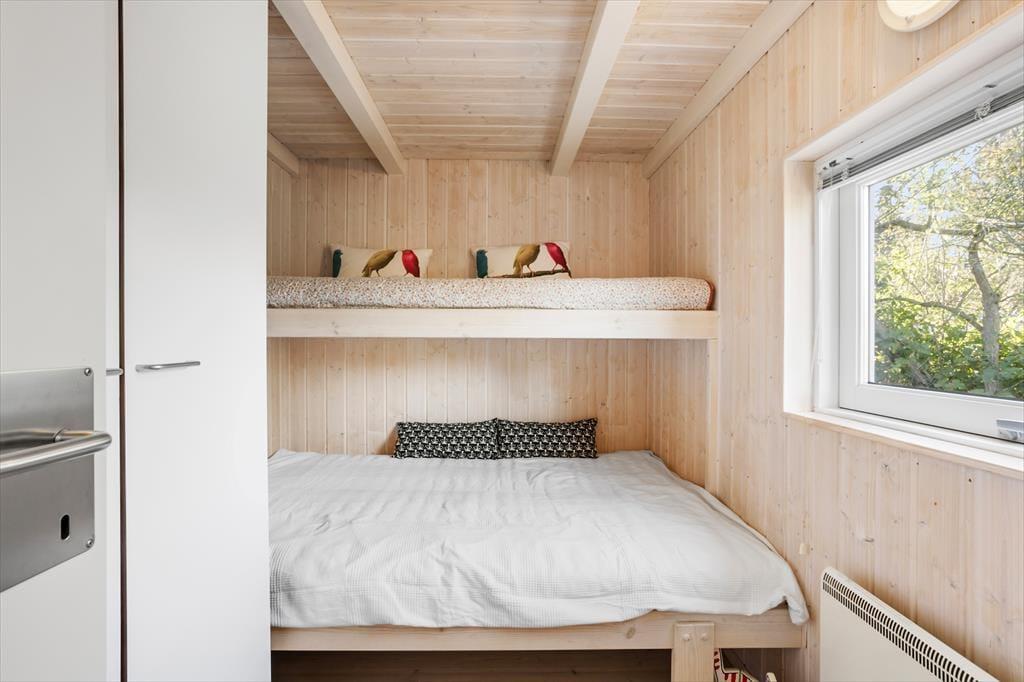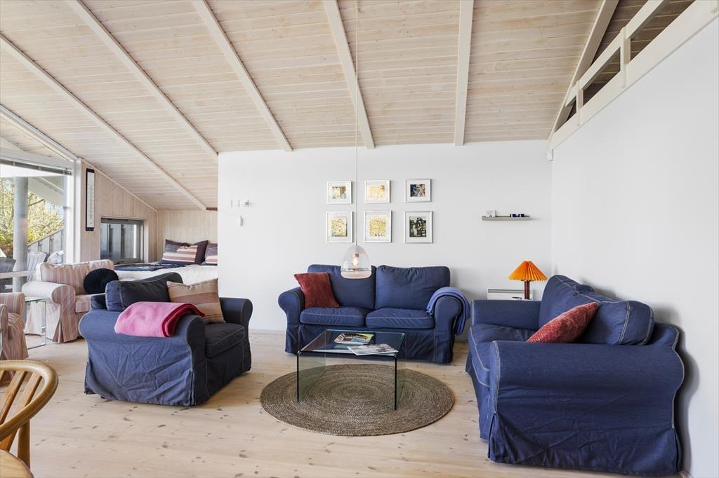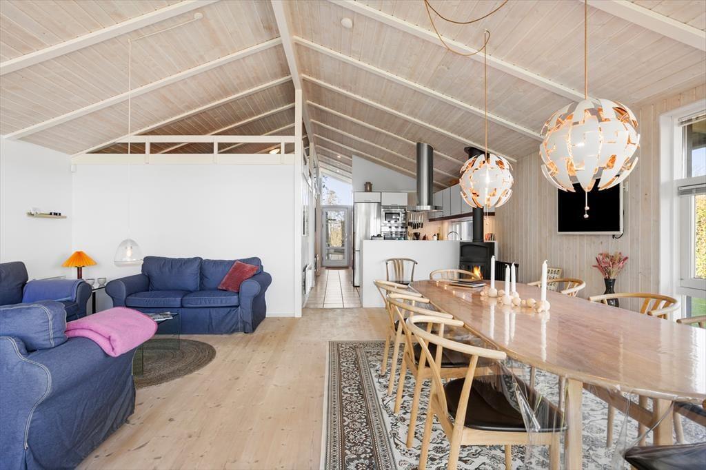Når du træder ind i sommerhuset, bliver du mødt af en lys og indbydende atmosfære, der straks får dig til at føle dig hjemme. Det hyggelige køkken/alrum er husets hjerte og indbyder til socialt samvær med familie og venner. Her kan du tilberede lækre måltider, mens brændeovnen skaber en varm og behagelig stemning. Fra stuen er der direkte adgang til den store terrasse, hvor du kan nyde den betagende udsigt til vandet. Husets tre dejlige soveværelser tilbyder komfortable senge, så du kan få en god nats søvn efter en dag fyldt med eventyr. I stuen finder du også en hyggelig alkove, der er perfekt til de mindre gæster eller til en ekstra gæst. Badeværelset er en sand oase med både spa og sauna, hvor du kan forkæle dig selv med afslapning efter en lang dag ved stranden.