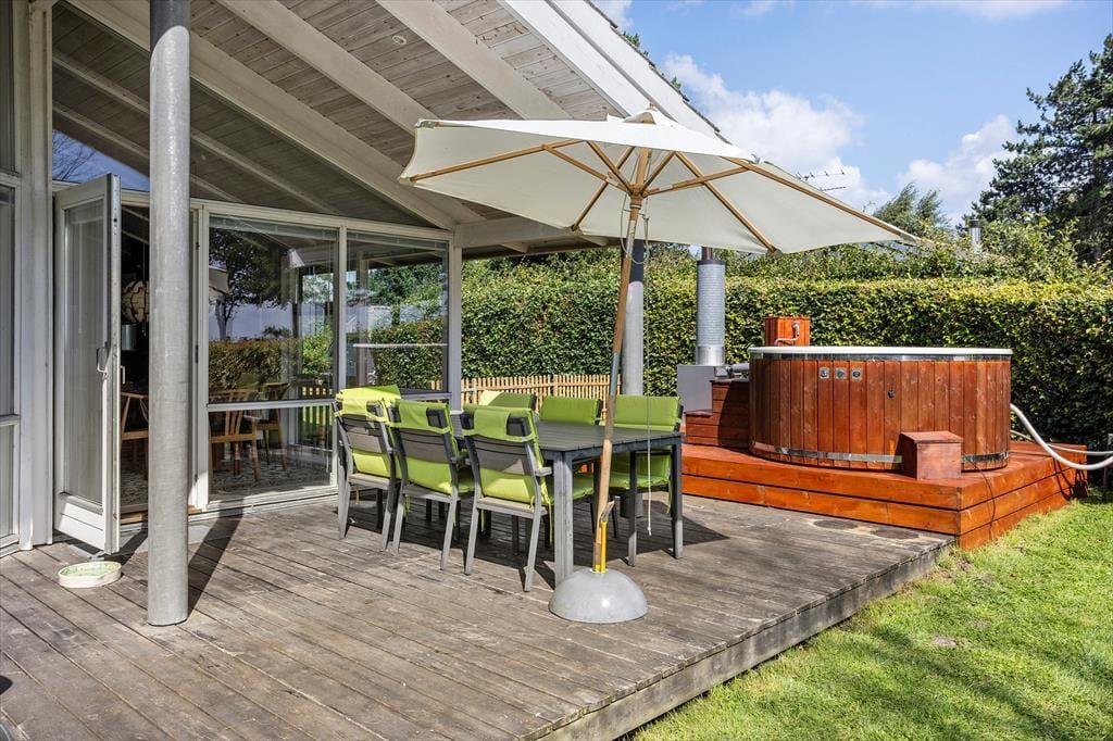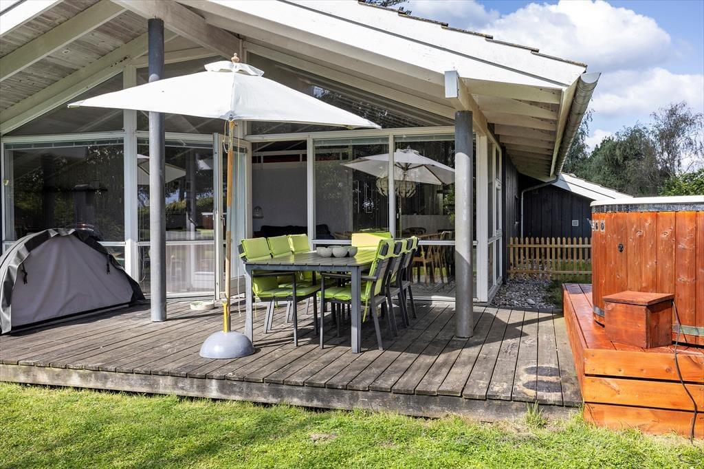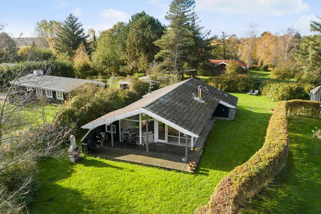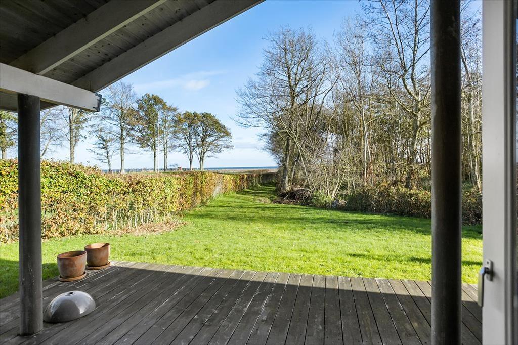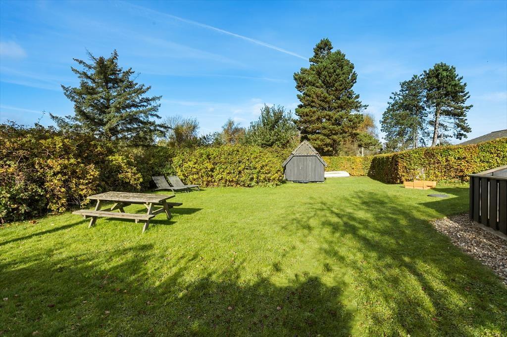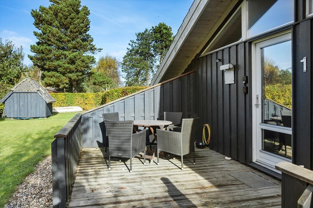Den skønne have omkring sommerhuset er ideel til leg, afslapning og udeliv. Her kan børnene boltre sig, mens de voksne nyder en kop kaffe eller et glas vin på terrassen, omgivet af naturens skønhed. Den delvist overdækkede terrasse er perfekt til både morgenmad i solopgangen og hyggelige grillmiddage under stjernerne. Fra haven er der kun et kort skridt til den fælles badebro hvor du kan tage en forfriskende dukkert eller bare nyde solen på en varm dag. Den rolige beliggenhed giver mulighed for lange gåture langs vandet, hvor du kan opleve den unikke natur og de smukke omgivelser.