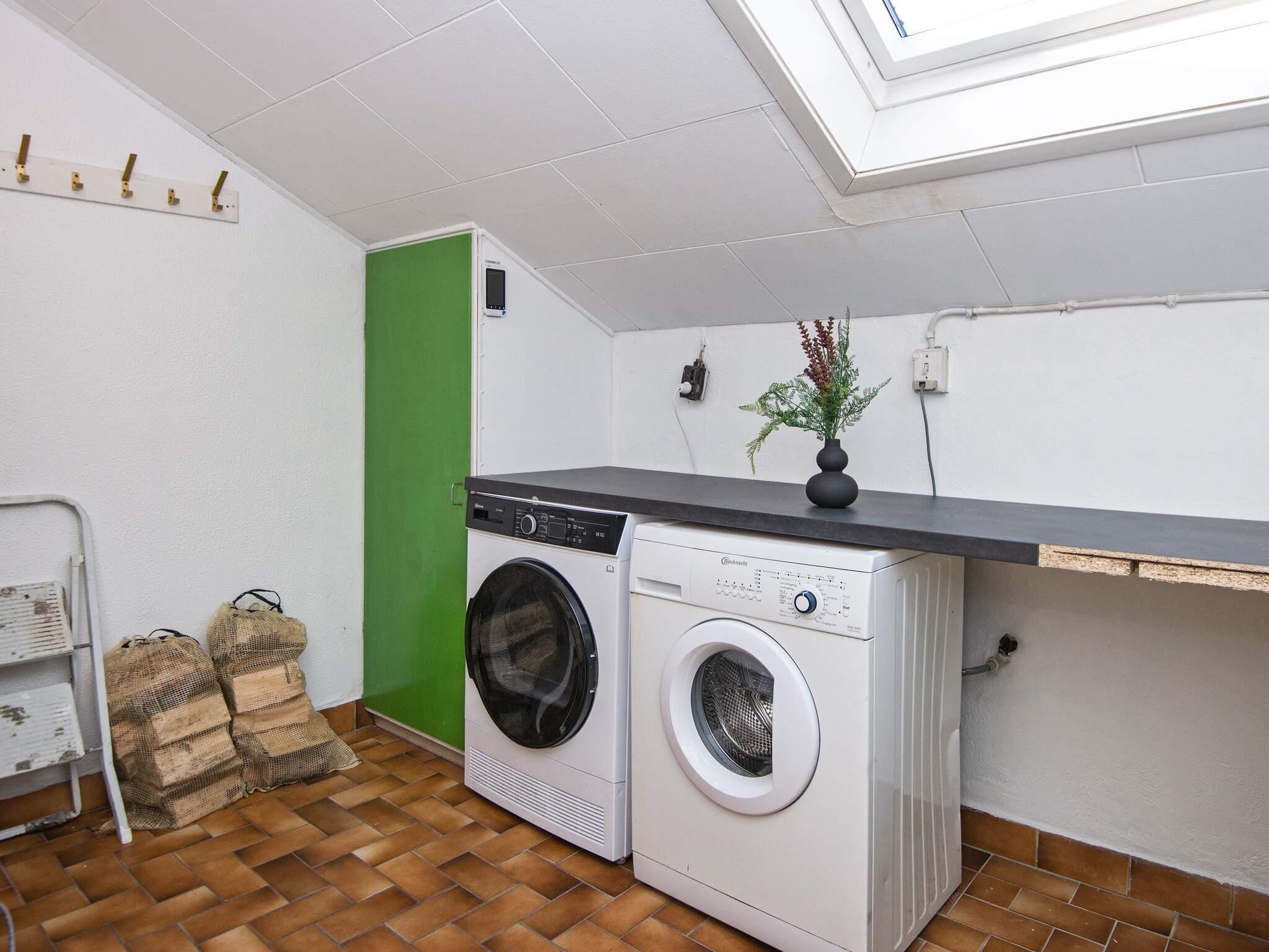 Huset består af et bryggers med vaskemaskine og tørretumbler, et afskærmet køkken i forbindelse med spiseplads og stue med brændeovn.