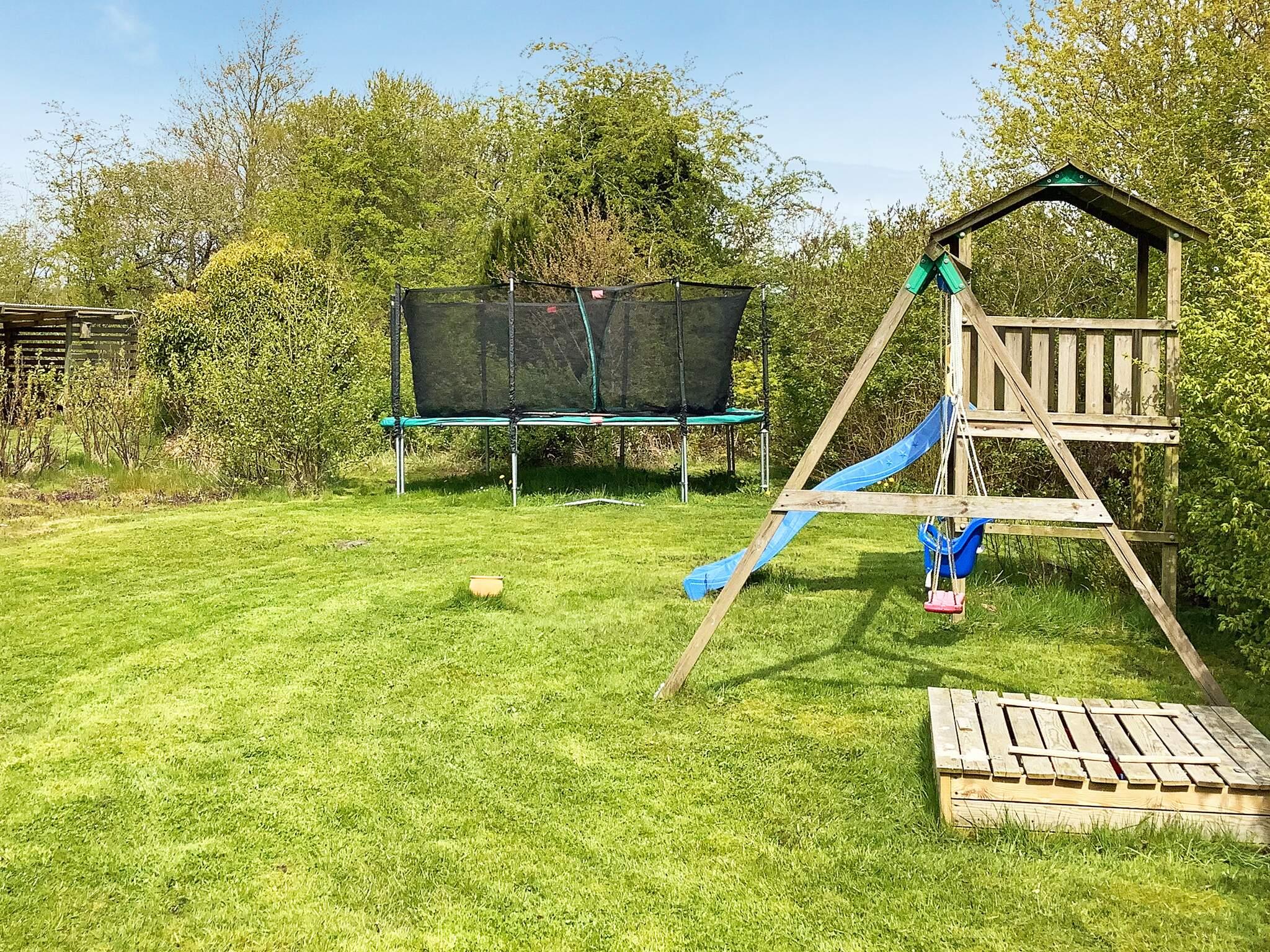 I haven er der et legetårn med rutschebane og gynger samt en trampolin(Trampolinen fjernes fra 01.10 – 31.03) og sandkasse.