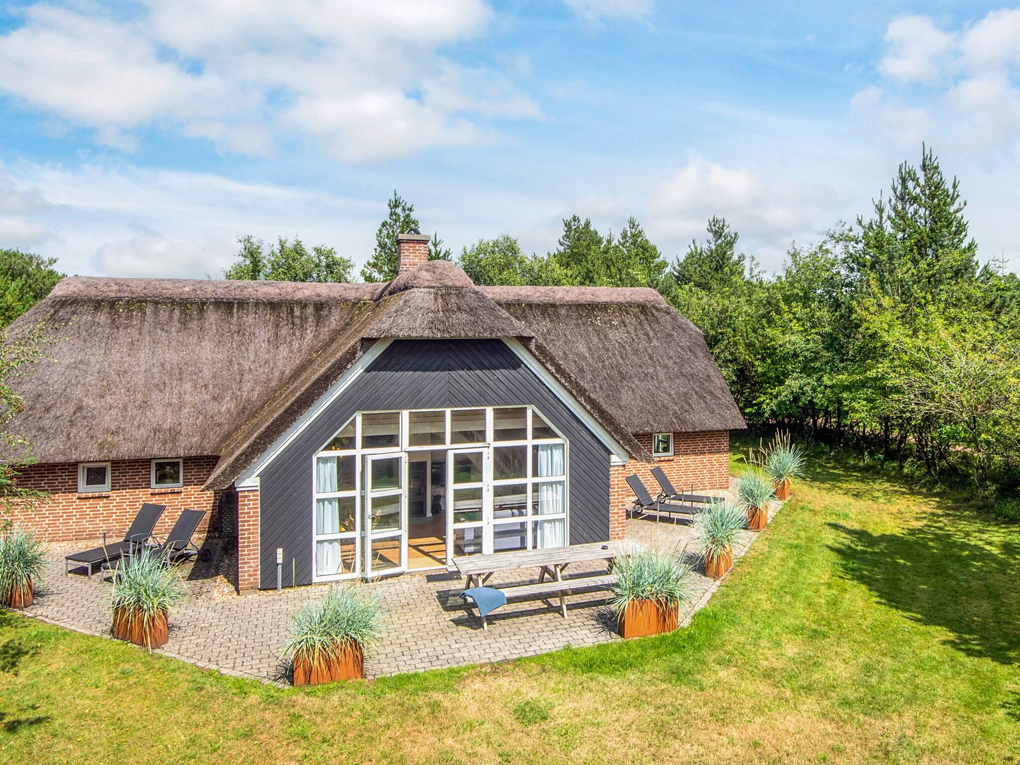 Dette rummelige feriehus på 184 m² ligger på en smuk, lukket naturgrund på 1.733 m² og tilbyder den perfekte blanding af komfort, sjov og miljøbevidst levevis. Det ligger i Houstrup, kun 3 km fra kysten, og er et ideelt fristed for familier, der ønsker at slappe af, mens de er tæt på naturen og attraktioner som Blåbjerg Plantages naturskønne vandrestier og det nærliggende vandland Sea West.