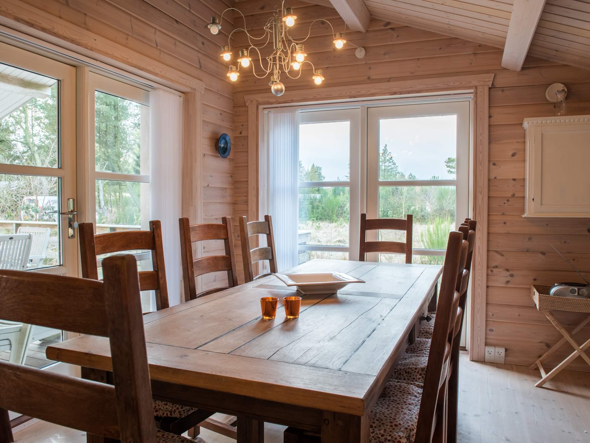 Dejligt, hyggeligt bjælkesommerhus beliggende midt i skønt skovområde med et rigt dyreliv. Sommerhuset oser af hygge med brændeovn. Det lyse køkken og stue ligger i åben forbindelse med hinanden, og fra stuen er der endvidere udgang til delvis overdækket træterrasse. Huset er indrettet i lyse farver og med naturlige bjælkevægge samt trægulv. Alle værelser er endvidere indrettede i lyse farver og er meget rummelige. Gratis slutrengøring!