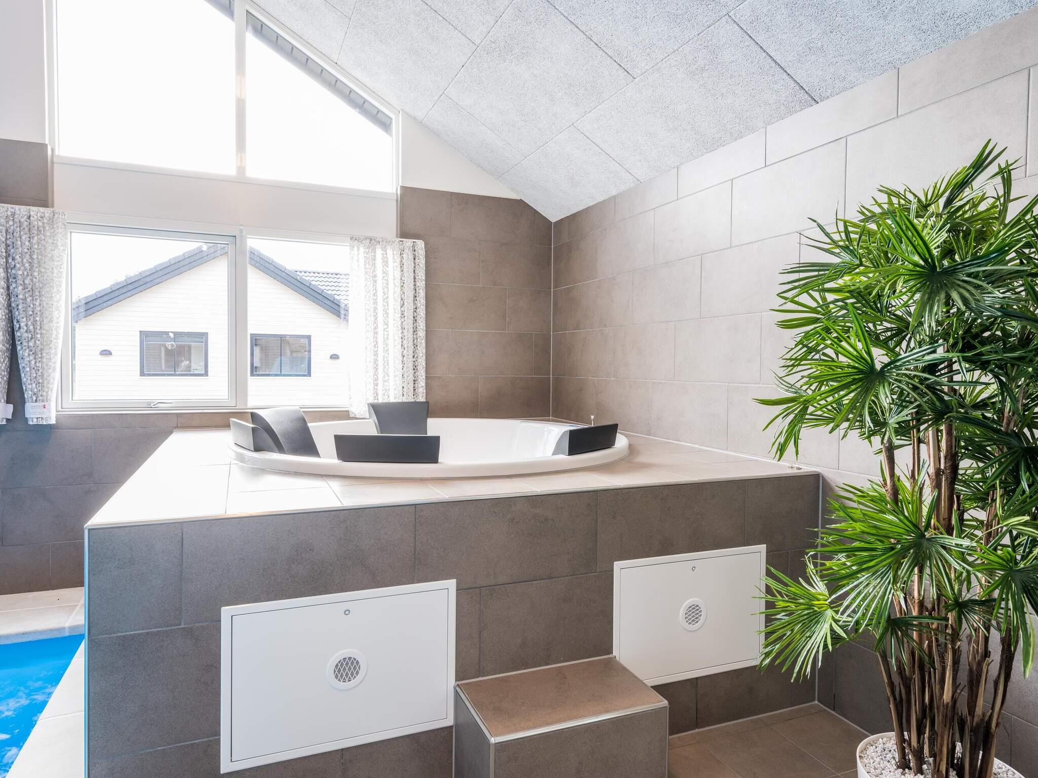 Max 2 hunde. Velindrettet sommerhus ved Houstrup Strand med stor poolafdeling med stor swimmingpool med vandrutschebane og svømmetræner, sauna, bruseniche og spabad med plads til 4-6 personer. Efter en god og oplevelsesrig dag er det skønt at lade sig glide ned i husets store spabad eller lade sig varme igennem i husets sauna.